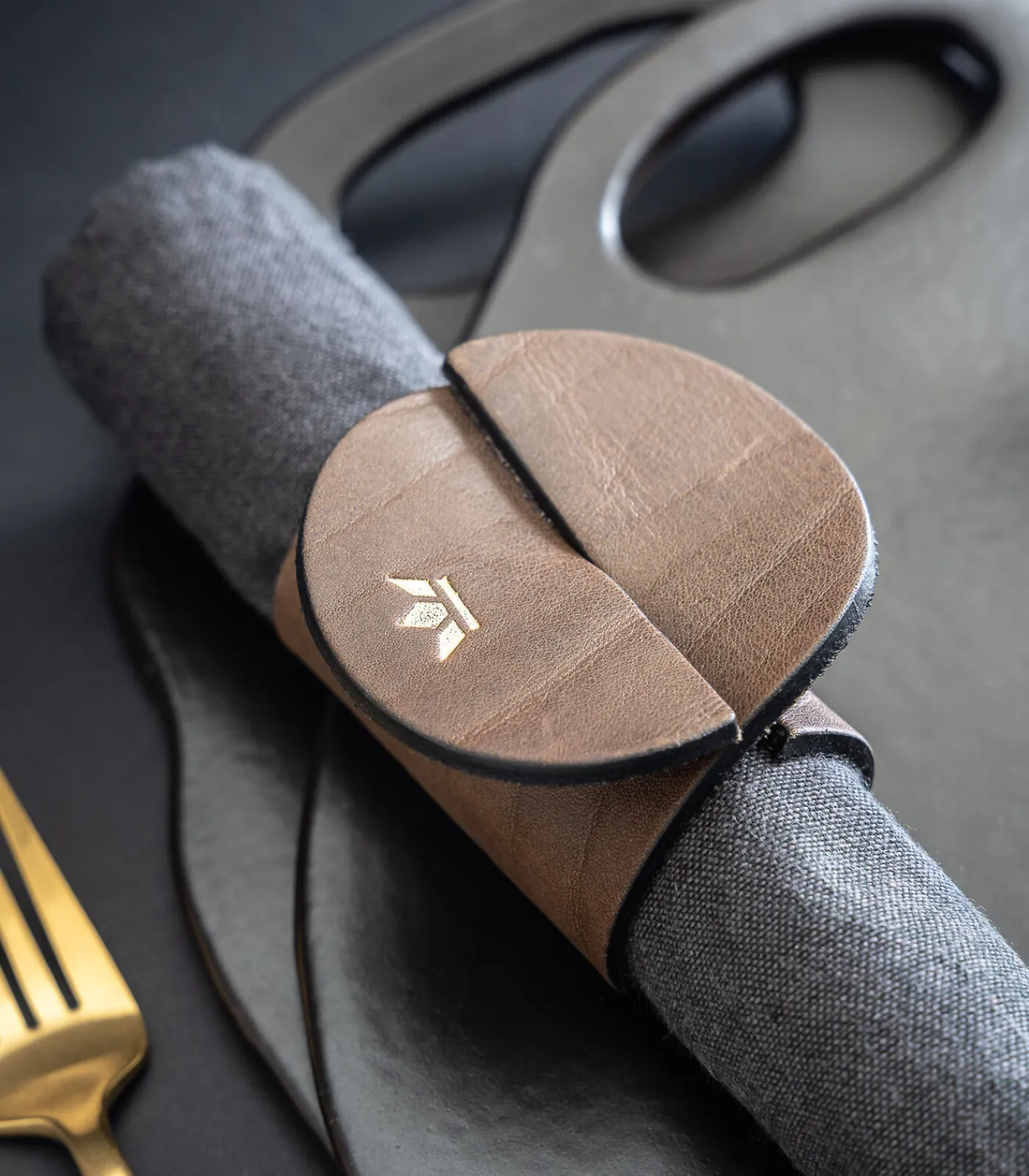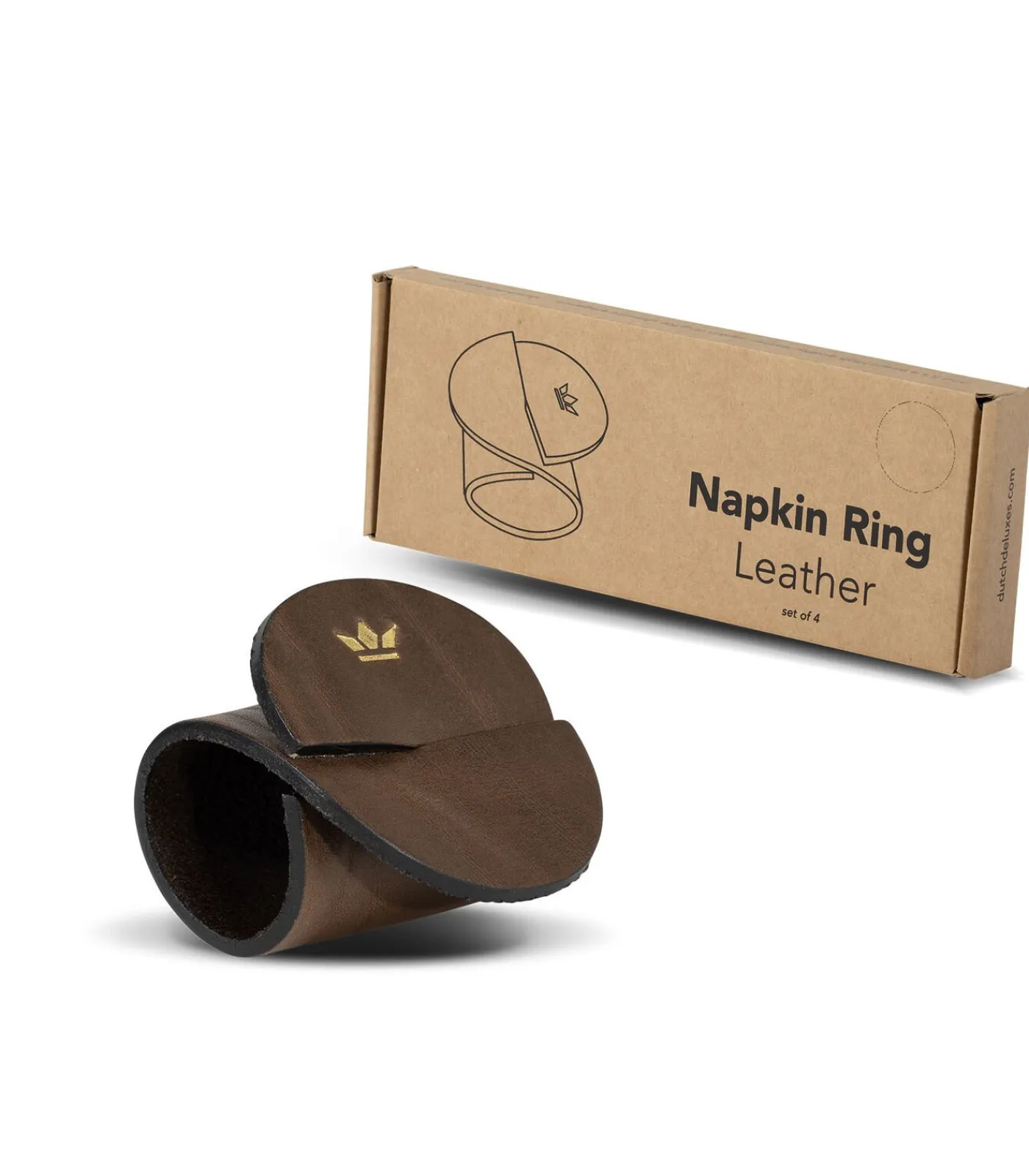 De finishing touch voor uw goed aangeklede eettafel: een unieke leren servetring gewikkeld om de servetten van uw gasten. Ze passen perfect bij onze andere tafelproducten, zoals de broodmand en placemats. Gemaakt van een uniek stuk dik, volnerf leer, zien en voelen ze rijk aan en zijn ze tegelijkertijd duurzaam. Ze worden geleverd in een set van vier, in de kleuren Vintage Cognac, Vintage Grey, Vintage Black en Pearly Rose en zijn verpakt in een stijlvolle geschenkdoos.