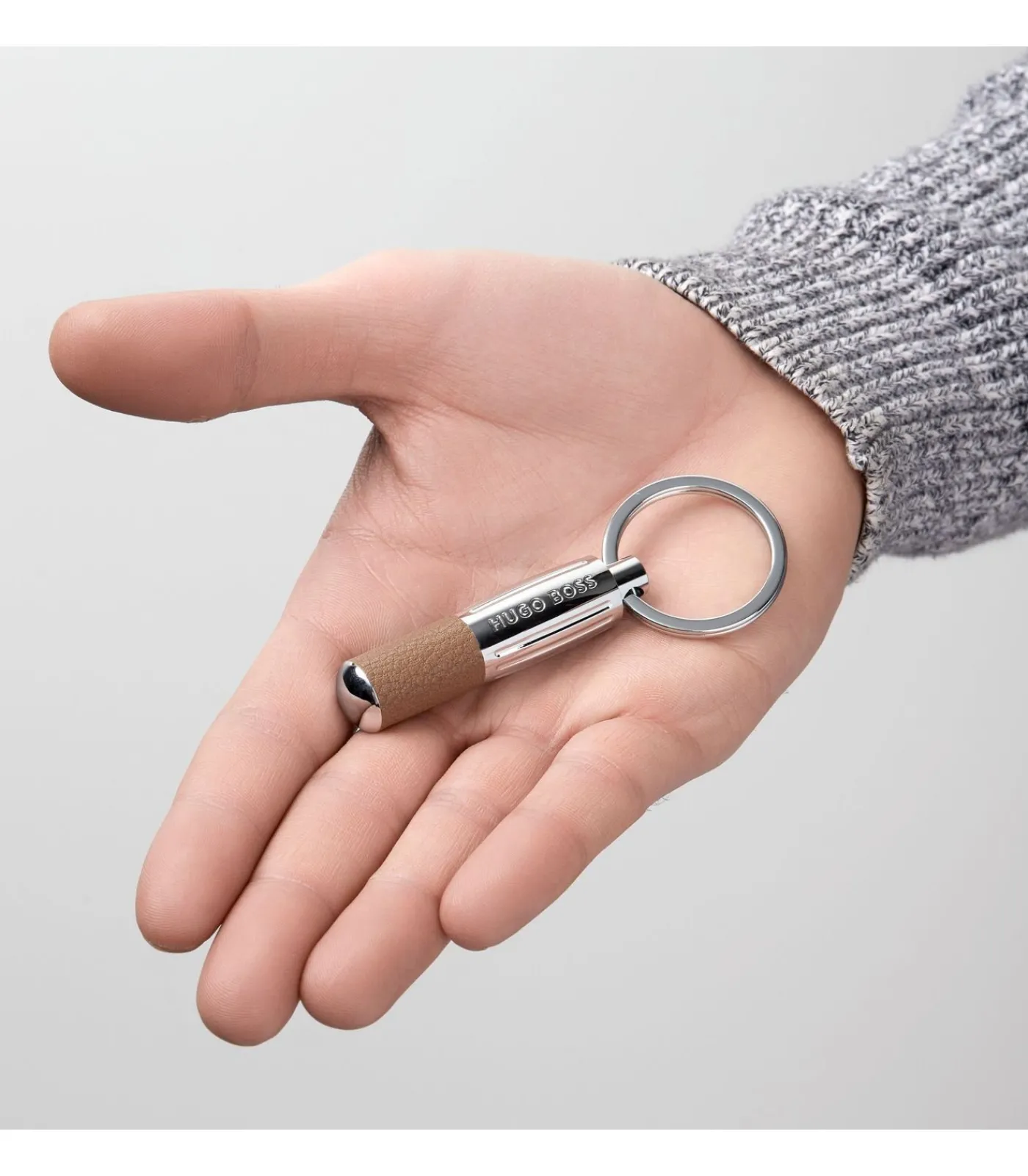 The ‘Pure Iconic’ keyring is a re–edition of our best–selling Pure keyring, combining crisp chrome metal with grained camel textures (PU). Playful oversized stripes and an unexpected logo placement add the final touch to this beautiful accessory. Dimensions: DIA.14.4 x 90/RING:32 mm, Material: 90% Chrome plating,10% Polyurethane