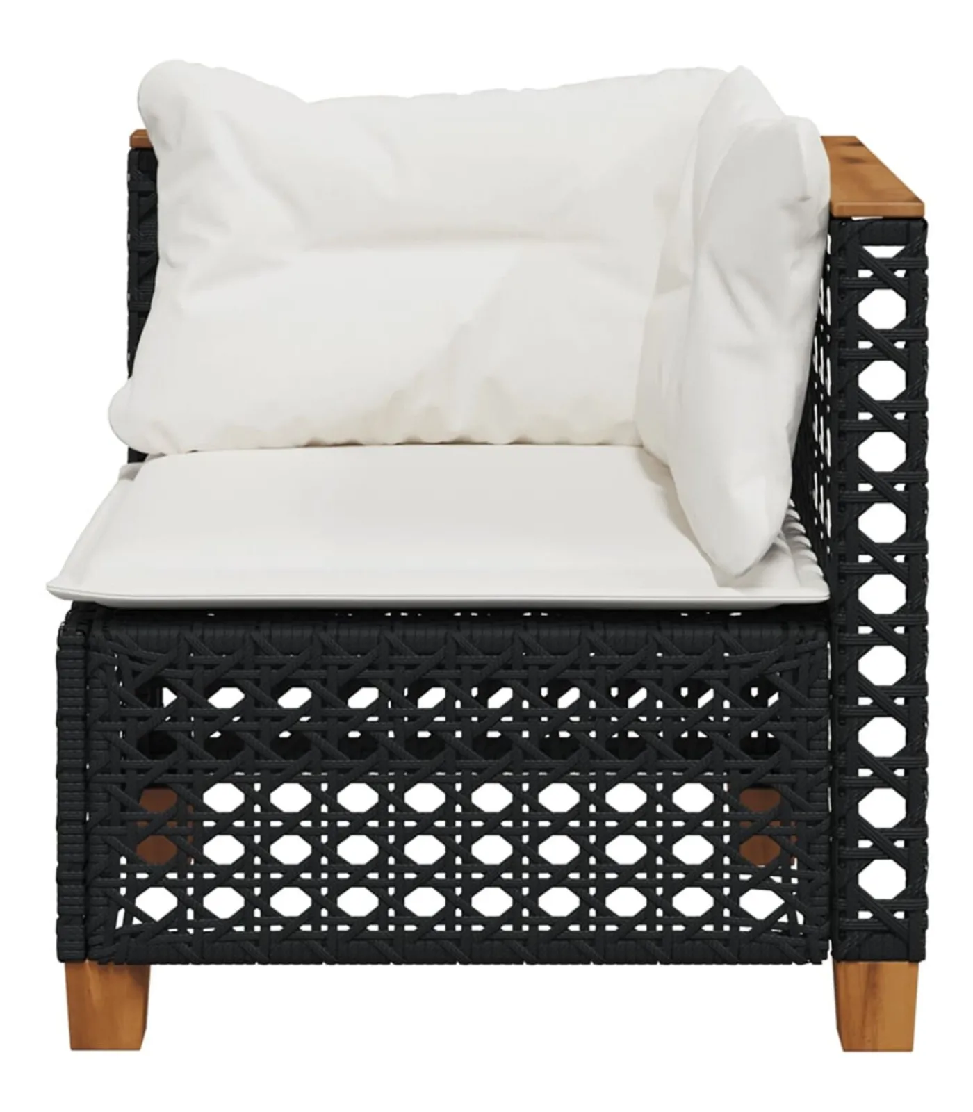 Materiaal: PE–rattan, gepoedercoat staal en massief acaciahout met een natuurlijke olieafwerking