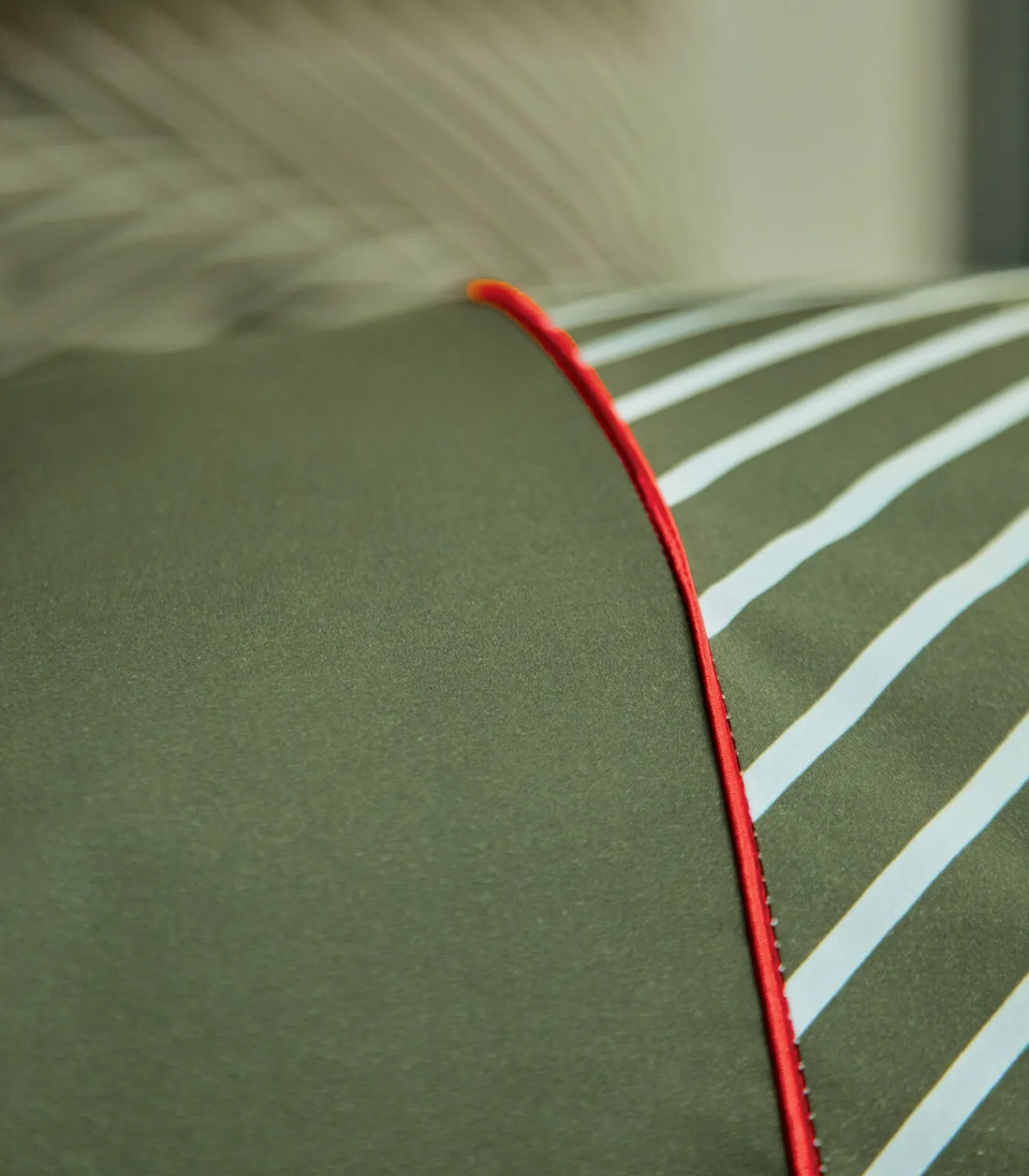 “Door samen te werken met het jeansmerk 1083, hebben we ervoor gekozen om de iconische keperstreep, zo kenmerkend voor Denim, te accentueren. We hebben het in twee kleuren afgewezen: Indigo en Mousse en geaccentueerd met een biezenafwerking. rood, de emblematische kleur van deze jonge merk.Deze items worden geweven, geverfd, bedrukt en gemaakt in de Vogezen.”