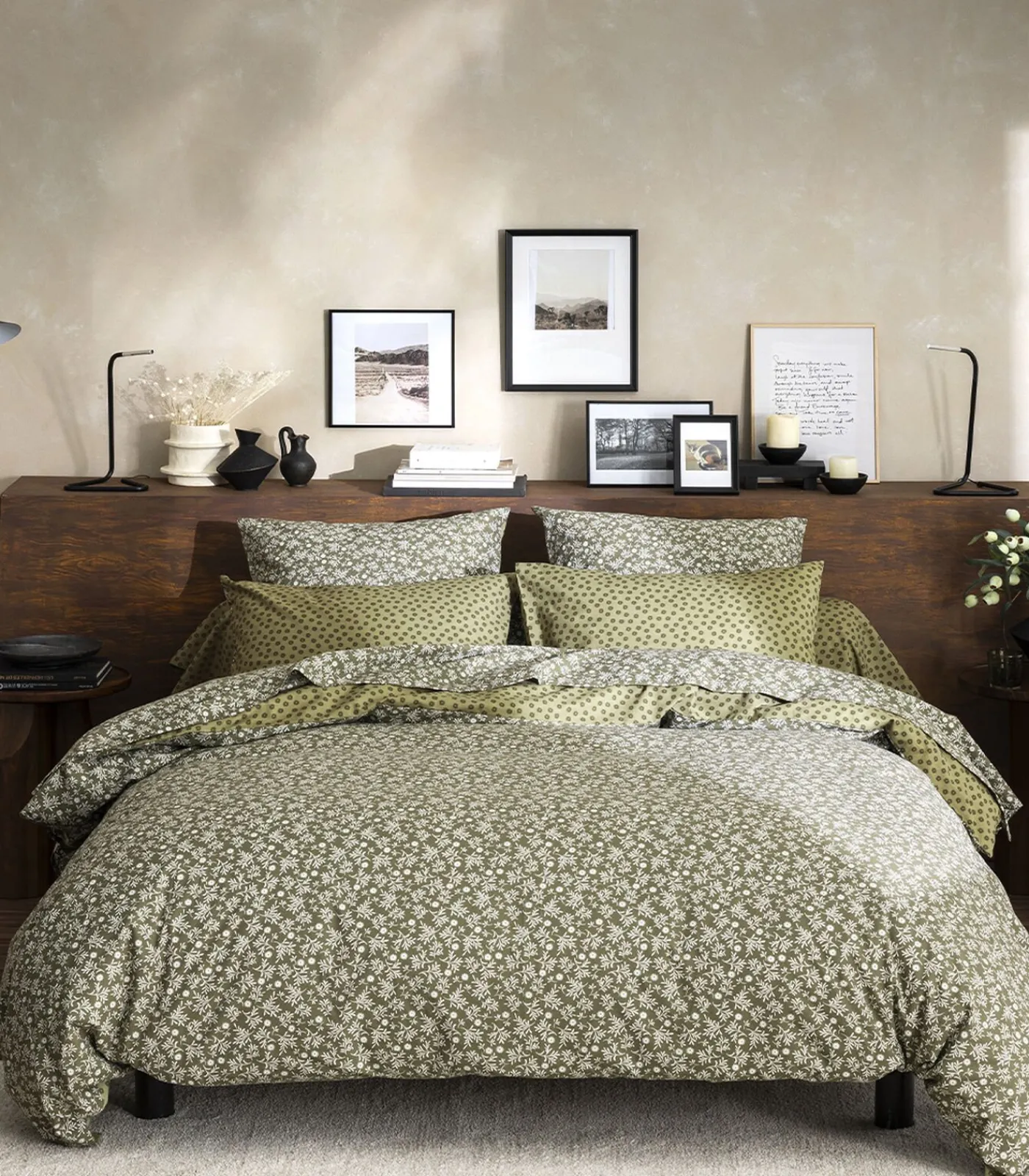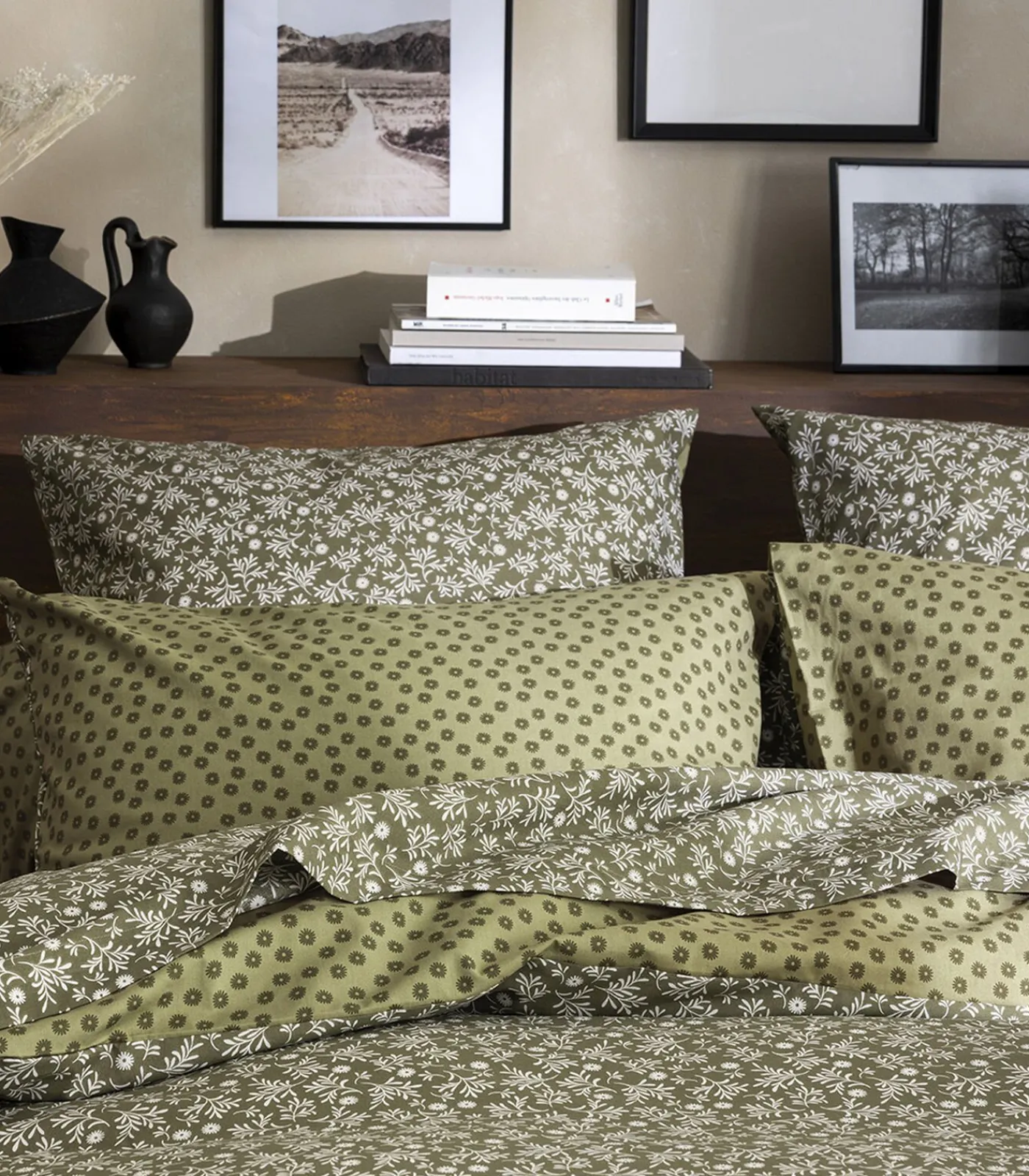 Maak van je slaapkamer een oase van rust met ons bedlinnen Léna met rustgevende kaki tinten. Dit laken van lyocell biedt de perfecte balans tussen stijl en comfort met zijn delicate witte bloemmotieven op een groene achtergrond. Ideaal om je bed een serene, chique sfeer te geven. De natuurlijke elegantie van de serie Léna is subtiel en kan worden aangepast aan al je wensen. Dit beddengoed is met zorg vervaardigd van een mix van lyocell en katoen en biedt ongeëvenaarde zachtheid en een fris gevoel voor een rustgevende, comfortabele nachtrust.