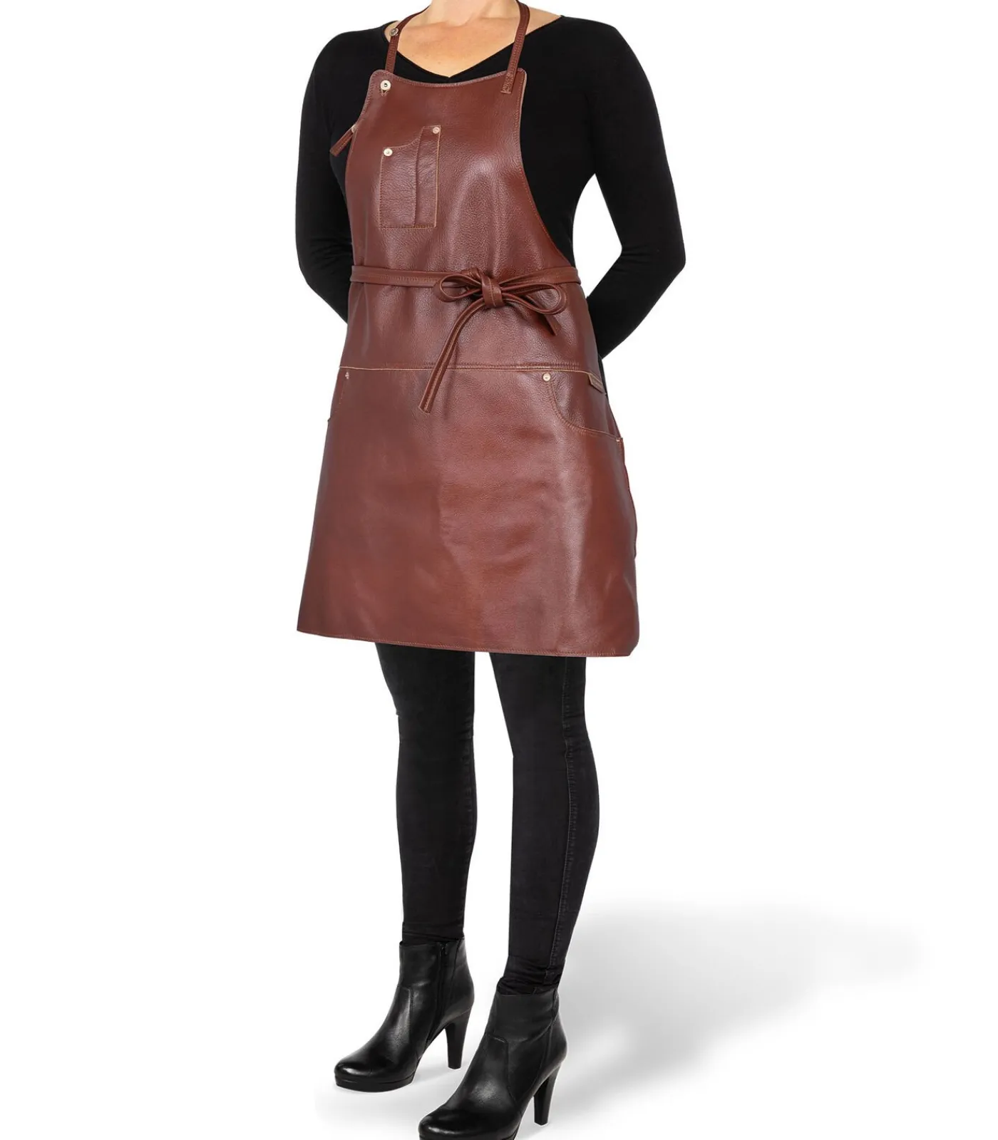 Luxe – Volnerf leer – Barbecue – Keuken – Schort – 5 zakken – Bruin Keuken- & Tafellinnen