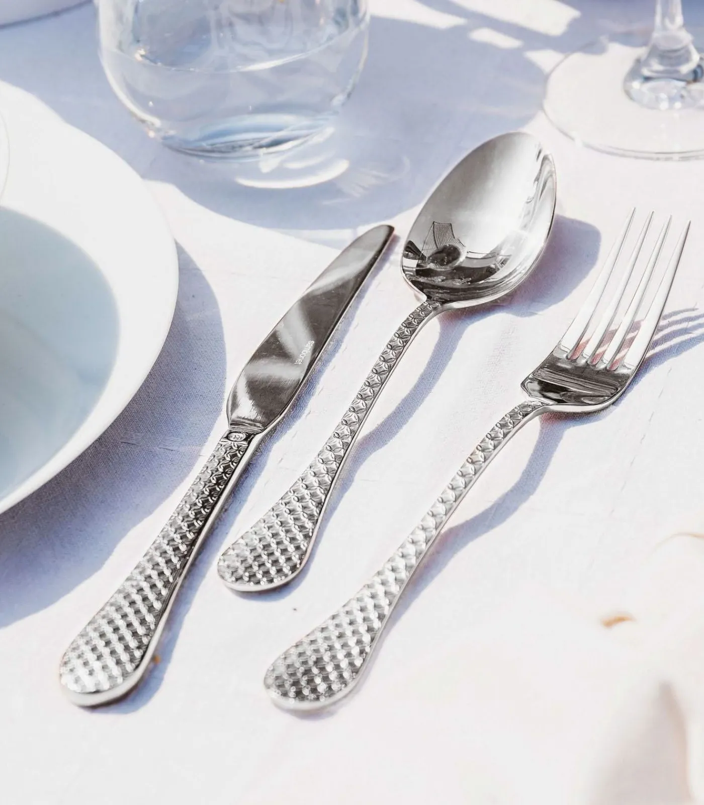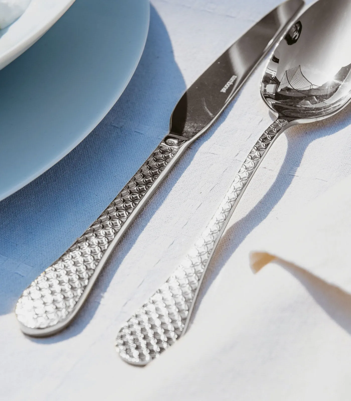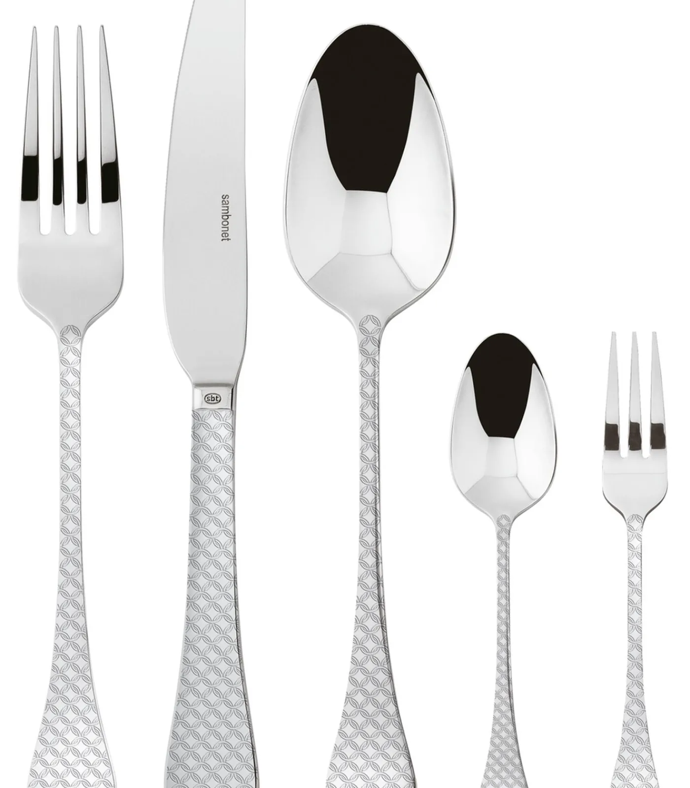 Kies voor een prachtig gedekte tafel met dit Sambonet Taormina bestek. Deze bestekset zal je gasten verrassen! Dankzij de print op het handvat is dit bestek net even anders dan je andere bestek. Kies uit de verschillende kleuren, goud, zwart, zilver of koper. Combineer de bestekset bijvoorbeeld met de koffielepels of gebaksvorkjes, of kies voor een andere collectie van Sambonet! Deze set bestaat uit: * 6 x Sambonet tafelvork Taormina * 6 x Sambonet tafelmes Taormina * 6 x Sambonet tafellepel Taormina * 6 x Sambonet theelepel Taormina * 6 x Sambonet gebaksvork Taormina