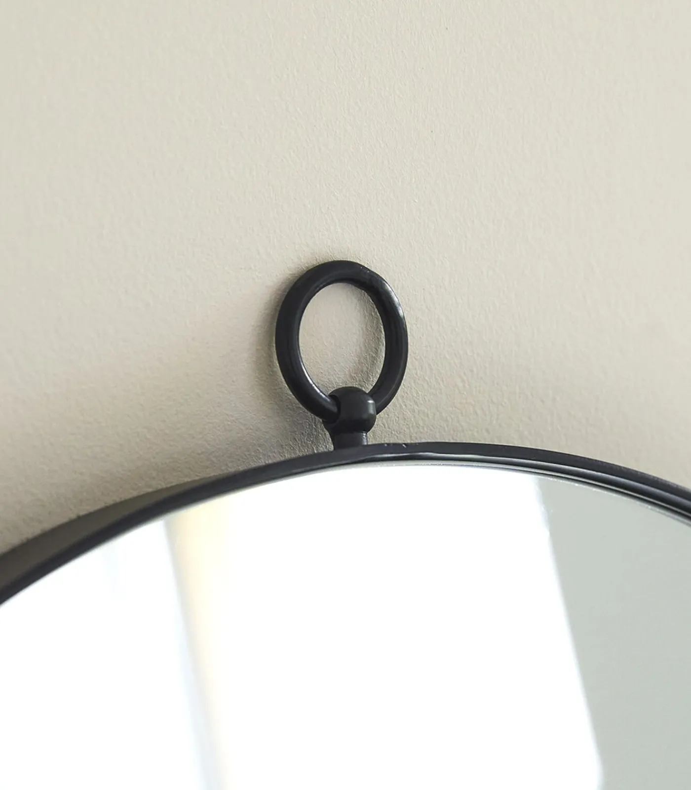 Deze hangende spiegel is een prachtig decoratief element dat u nodig hebt om een urban of wat klassieker interieur te perfectioneren.Soberheid en elegantie zijn de belangrijkste kenmerken van deze ronde spiegel met een zwart metalen frame.Erg mooi in uw slaapkamer, uw woonkamer of de hal.