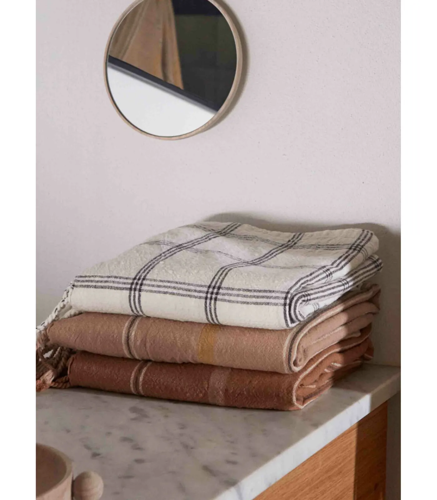 Deze badhanddoek met decoratieve franjes is gemaakt met de kindertijd in gedachten. Het grafische ontwerp en de franjes maken er een mooi en praktisch accessoire van. Het badlaken is gemaakt van zacht katoen. Neem je badlaken mee naar het strand en gebruik het tegelijkertijd als deken. We raden aan om de badhanddoeken een nacht in koud water te laten weken voordat je ze voor de eerste keer wast. Dit verbetert het vermogen om water op te nemen.