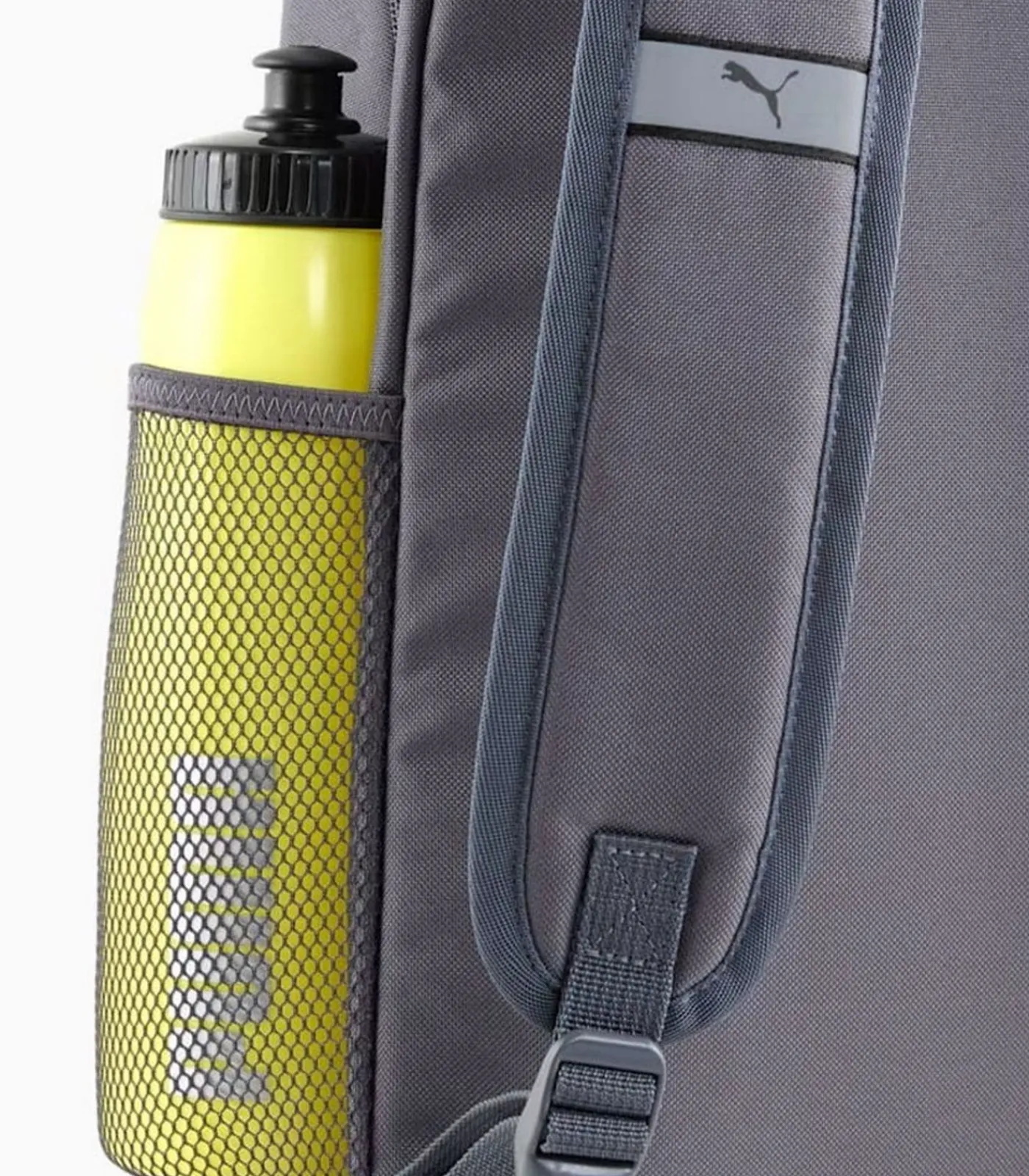 Puma’s I’LL FOLLOW YOU EVERYWHERE – Grijze Rugzak is gemaakt van 100% polyester en is officieel gelicentieerd. De rugzak heeft een hoofdcompartiment, verder een voorzak, rits, zijzak en gaaszak. Het ontwerp van de rugzak toont het Puma–crest, logo en tekst. De rugzak is gemaakt van hergebruikt materiaal en heeft gewatteerde, verstelbare schouderriemen, een gewatteerd rugpaneel met reflecterend detail en een draaghandvat van geweven band. De rugzak wordt vastgezet via een tweewegrits.