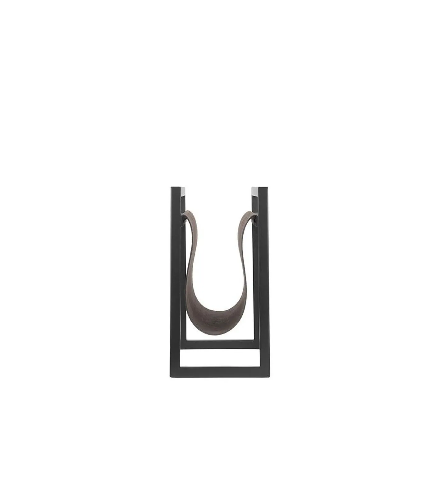 Deze magazine houder bestaat uit een rechthoekig frame, uitgevoerd in zwart metaal. Tussen het frame rust het hoogwaardige antraciet kleurige, dubbele leder. Dit dubbele leder zorgt er naast de stevigheid tevens voor dat zowel de binnenzijde als buitenzijde zijn voorzien van de prachtige lederstructuur met zijn gave kleurschakeringen en subtiele contrasten.