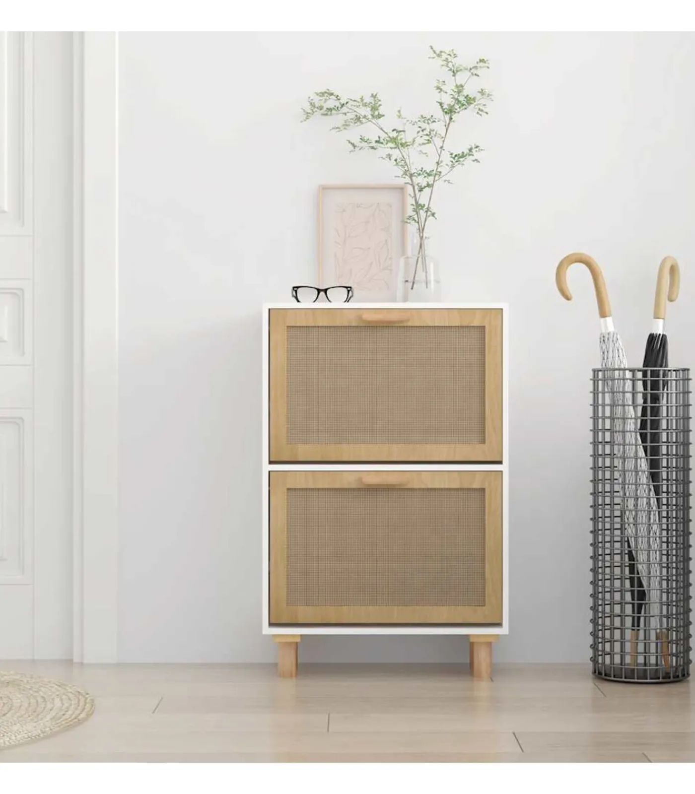 Voldoende opbergruimte: dit schoenenrek heeft 2 lades, waardoor hij over voldoende ruimte beschikt om je schoenen geordend en binnen handbereik op te bergen. Ook voegt het natuurlijke rattan weefontwerp in de lade extra schoonheid toe.