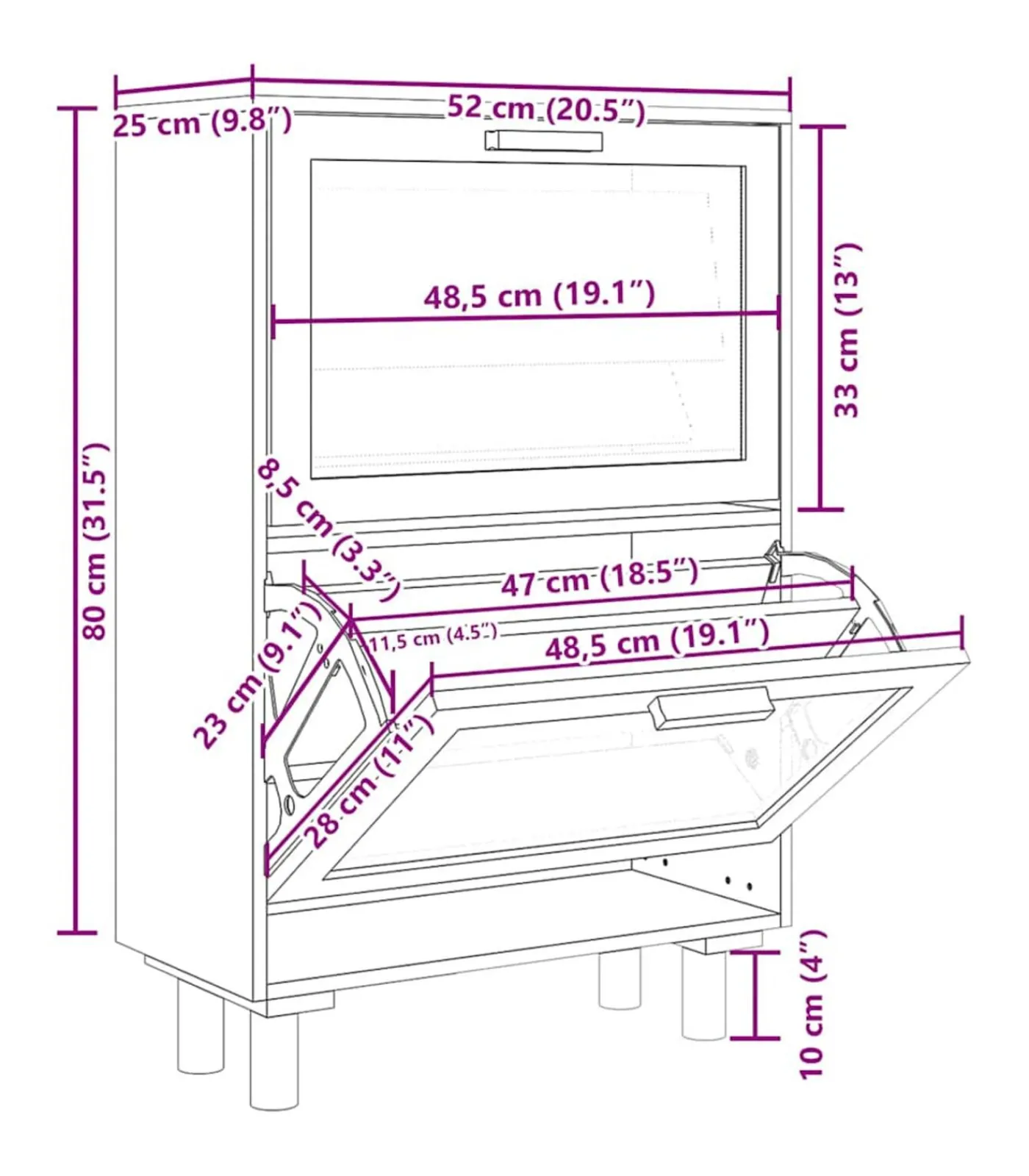Neerklapbare lade ontwerp: dankzij de neerklapbare lades is deze schoenenkast gemakkelijk te openen en te sluiten.