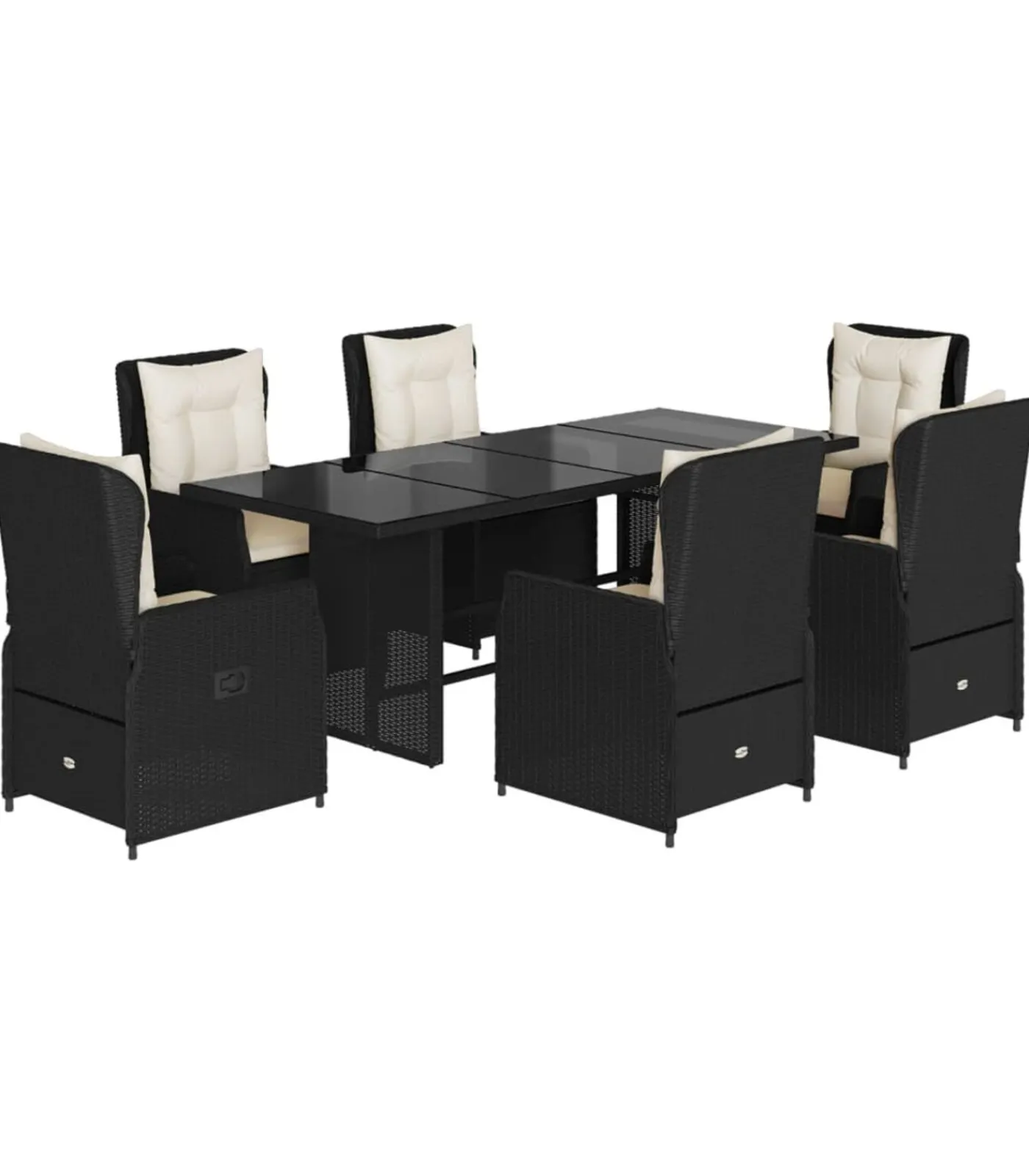 Materiaal: PE–rattan, gepoedercoat staal en gehard glas