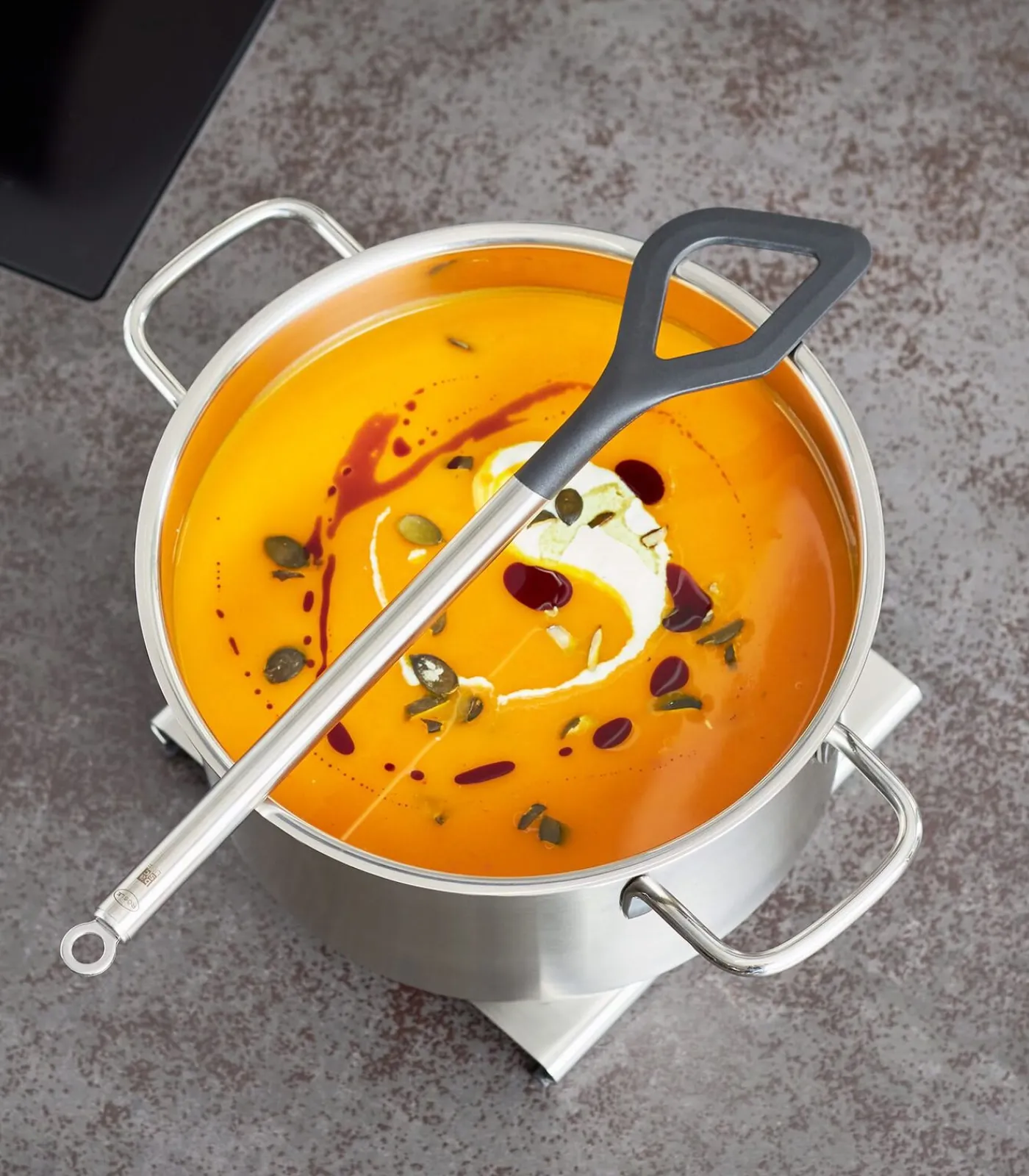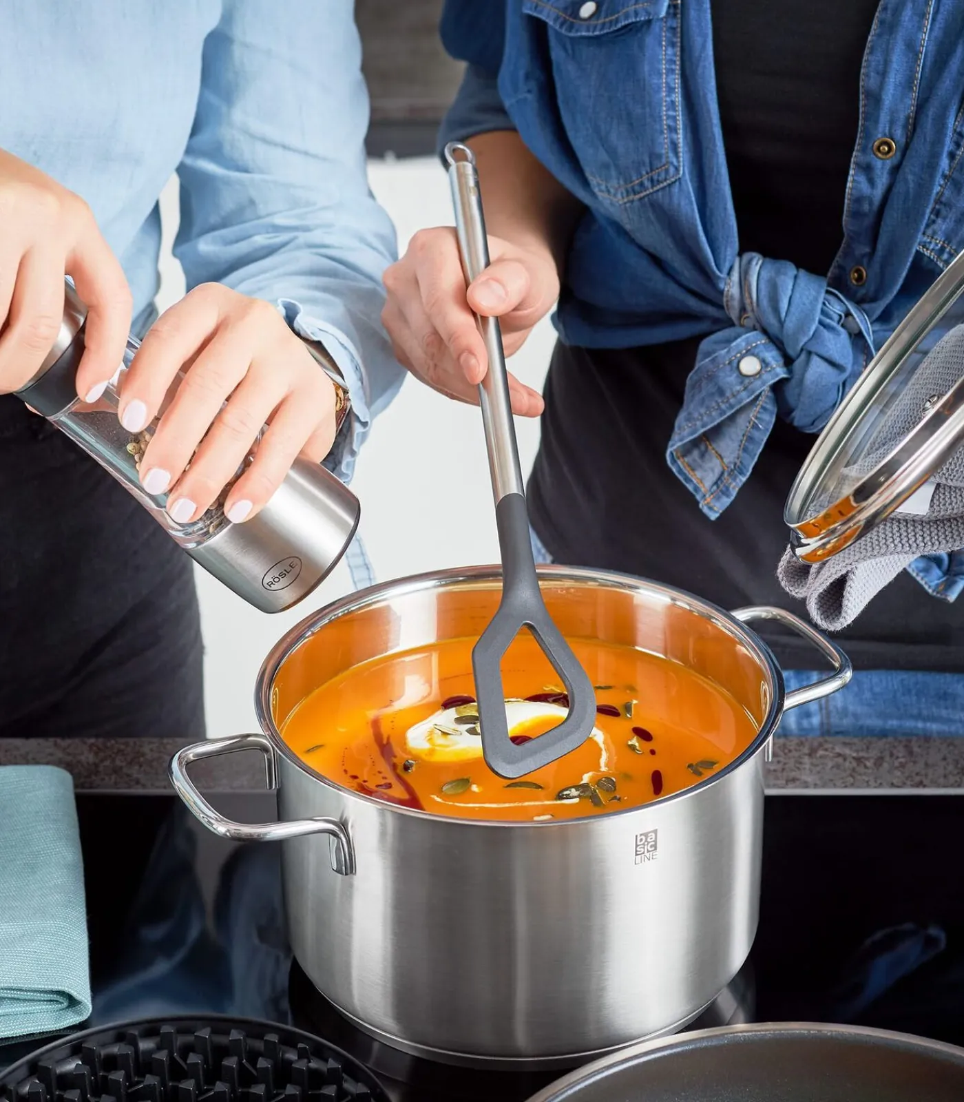 Ben jij een echte keukenprins of –prinses, dan mag een schuimspaan niet missen in je keuken. De Rosle Basic Line Schuimspaan – RVS / Siliconen – 32 cm is ideaal om vet uit te laten lekken bij het opscheppen of om ongewenst, drijvend schuim weg te halen. De schuimspaan is gemaakt van 18/10 roestvrij staal en heeft een lengte van 32 cm. Door de praktische ophanglus is hij gemakkelijk op te bergen en met de siliconen laag maak je minder snel krassen in je pan. Na gebruik kan de schuimspaan gereinigd worden in de vaatwasser.