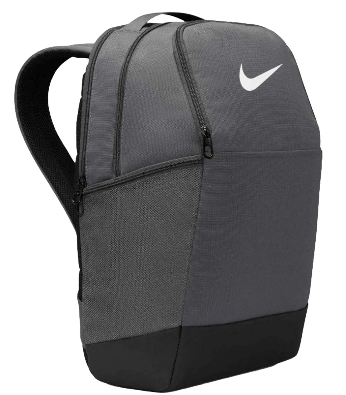 Nike Brasilia – Donkergrijs rugzak gemaakt van polyester met een inhoud van 9,5 liter. Deze zak bevat een voorzak en een hoofdcompartiment. Verder beschikt de zack over een verstelbare schouderriem, handgreep en gasfleshouder. Het ontwerp is eenvoudig met het Nike logo. De zack wordt vastgezet met ritssluitingen.