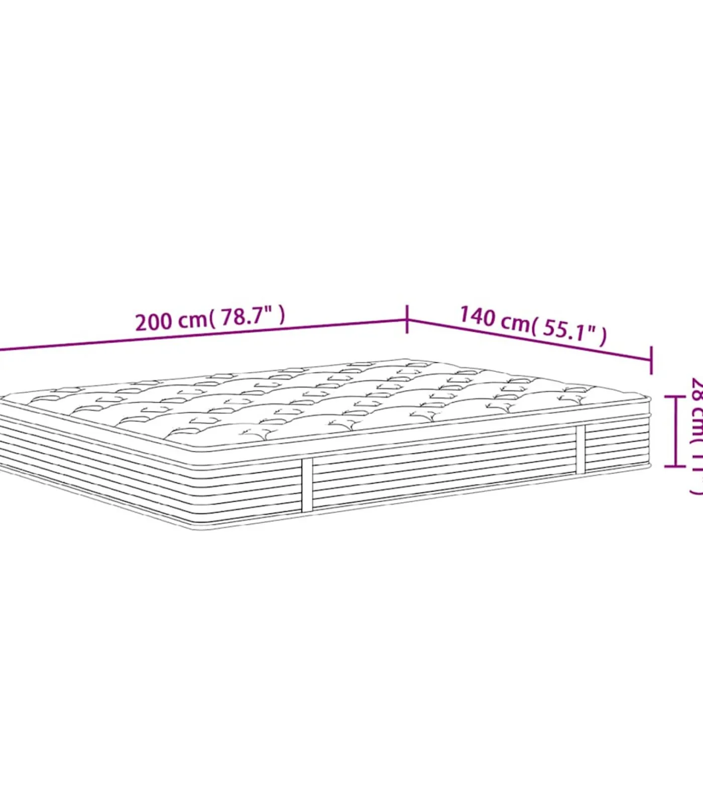 Afmetingen: 140 x 200 x 28 cm (B x L x D)
