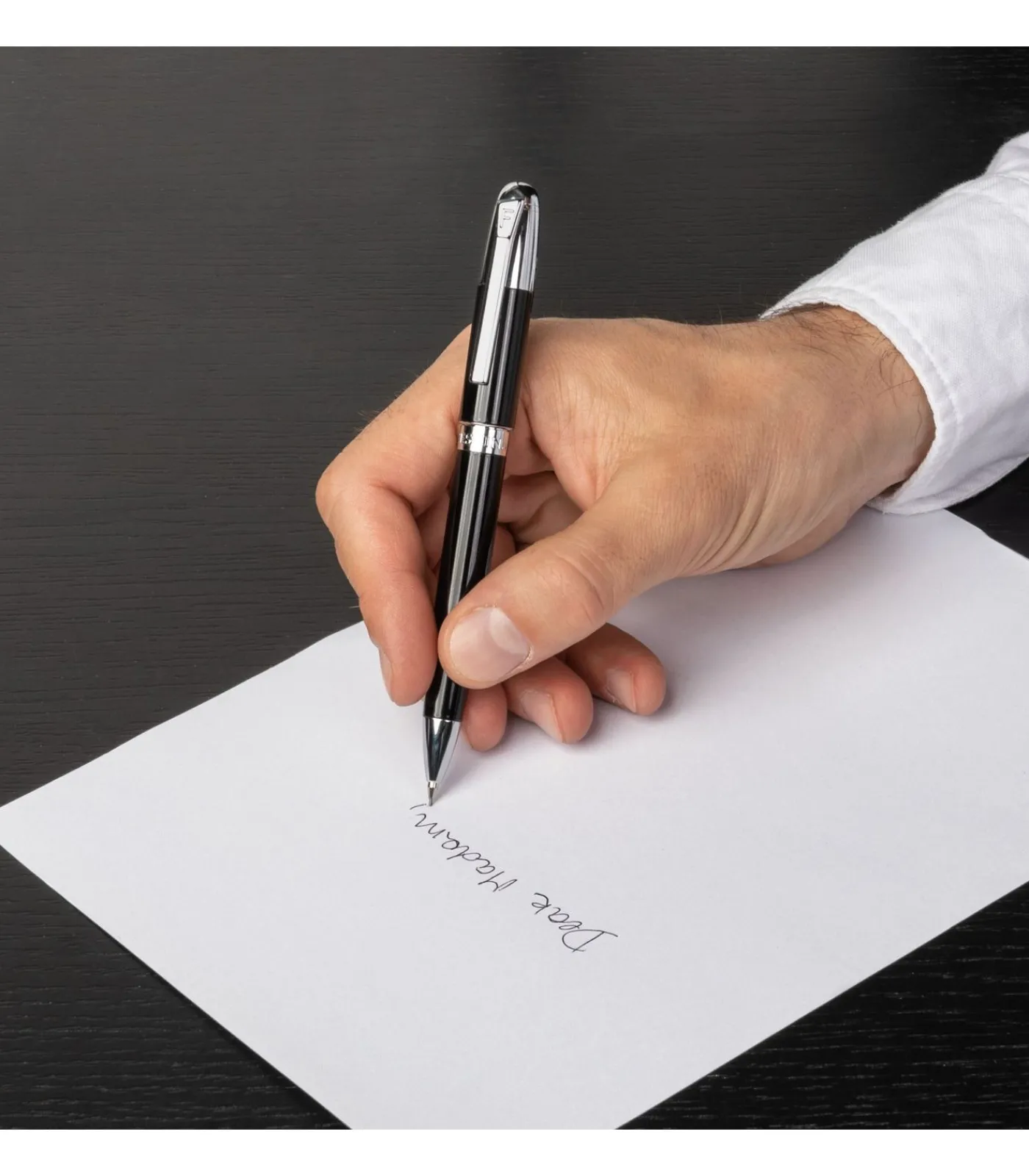 Het Classicals vulpotlood belichaamt een uitmuntende puurheid met zijn slanke en evenwichtige frame. Dit tijdloze ontwerp speelt met het contrast tussen een stralende zwarte lak en heldere chromen metalen accenten voor een fascinerende esthetiek. Dimensions: DIA.11/H.141 mm, Material: Brass,Metallic paint (shiny),Stainless steel,Chrome plating