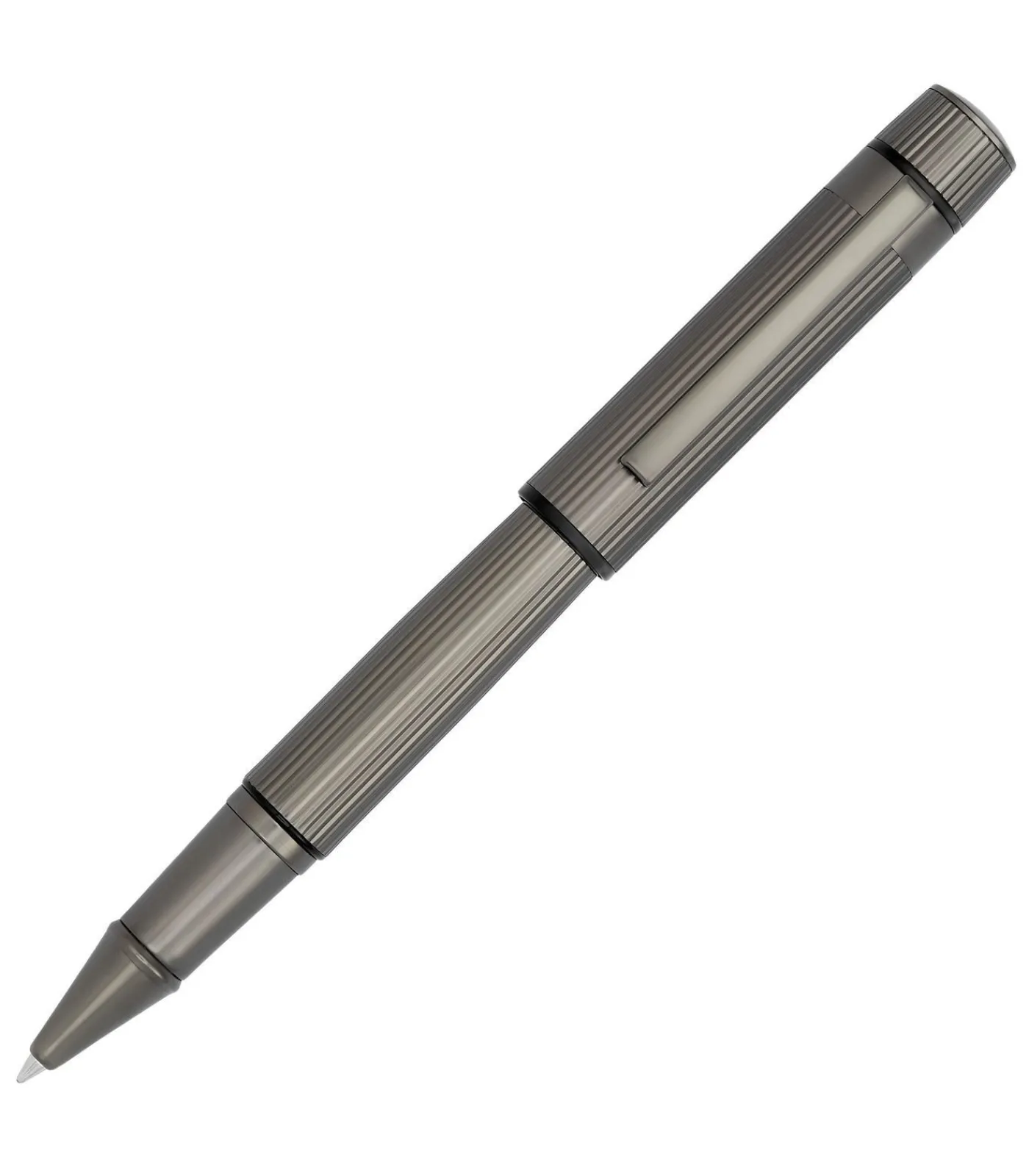 Met belangrijke elementen uit het DNA van onze schrijfinstrumenten, zoals verticale strepen, luxueuze ringdetails en innovatieve texturen, brengt onze nieuwe Core–lijn een opvallende nieuwe formatie in onze collectie schrijfinstrumenten. Met zijn robuuste monturen, taps toelopende silhouetten, balpennen uit één stuk en verlengde doppen vertegenwoordigt deze lijn een geraffineerde evolutie. Deze pen wordt aangeboden in twee kleurenversies: Matzwart met kleine glanzende chromen ringdetails Matte Gun met kleine glanzende zwarte ringdetails. Elke kleur is verkrijgbaar in drie schrijfwijzen: balpen, rollerball en vulpen. Dimensions: DIA.12/H.144 mm, Material: Brass,Gun plating