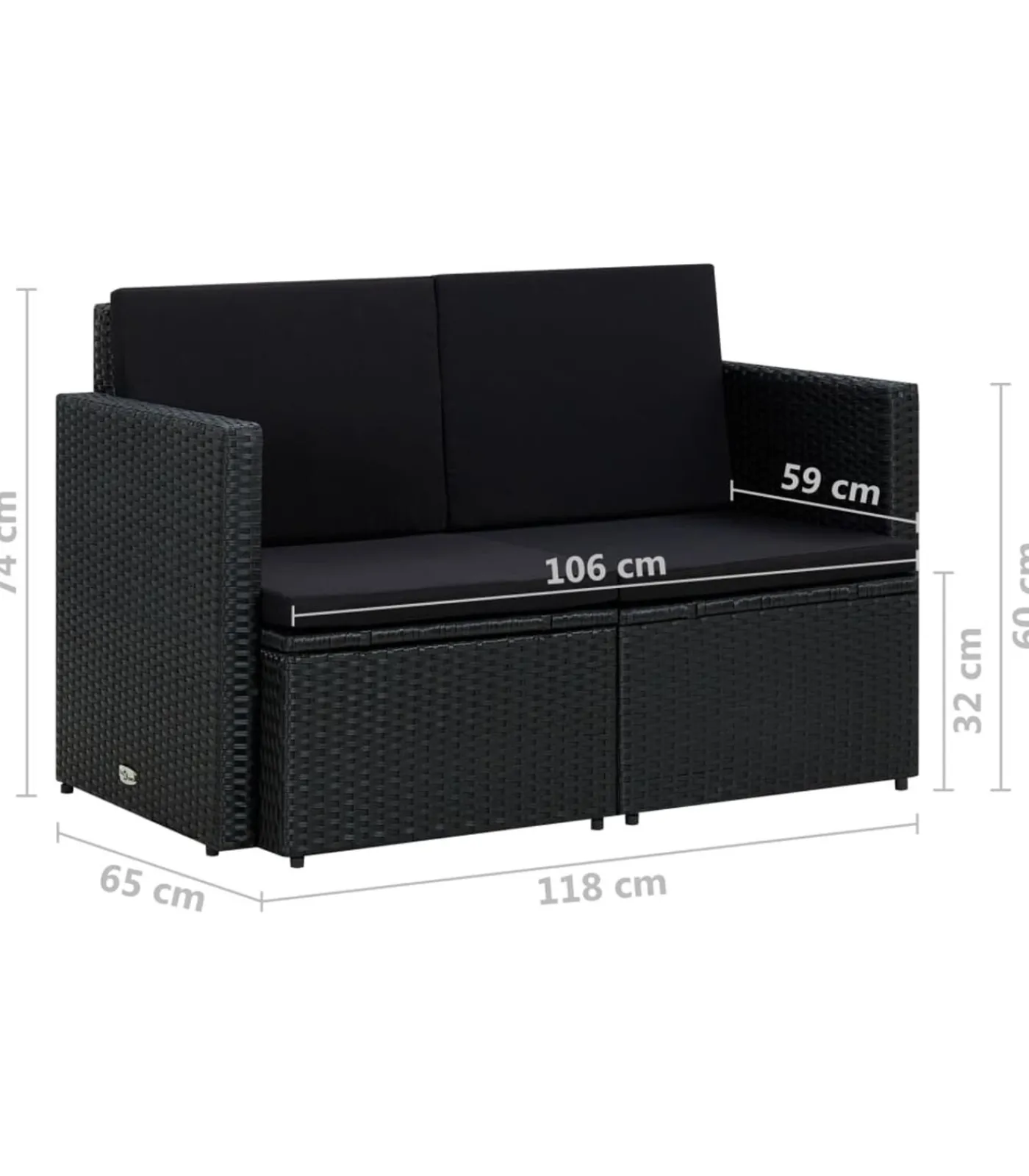 De terrasbank is gemaakt van waterbestendig PE–rattan waardoor hij gemakkelijk schoon te maken, robuust en geschikt voor dagelijks buitengebruik is. Het stalen frame maakt de bank stevig en stabiel. De constructie is lichtgewicht en eenvoudig te verplaatsen. Deze set wordt ook geleverd met zeer comfortabele, dik gevulde zitkussens voor het ultieme comfort. De onderhoudsarme polyester hoezen kunnen afgenomen en gewassen worden.