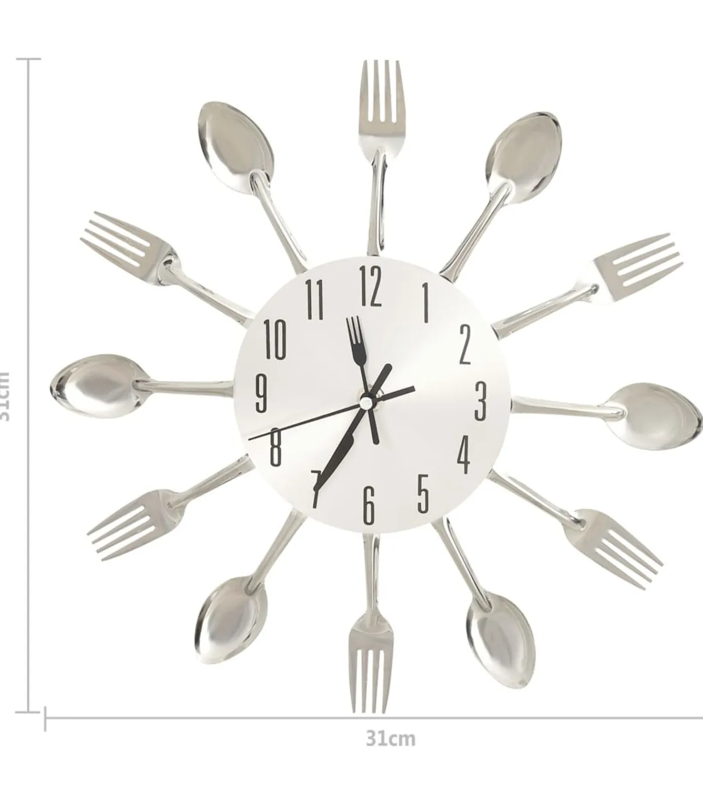 Online Wandklok lepel-en-vork 31 cm aluminium zilverkleurig Klokken