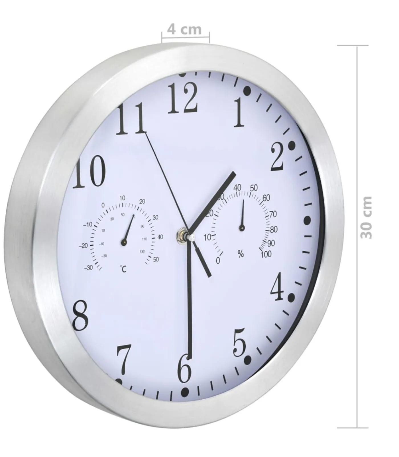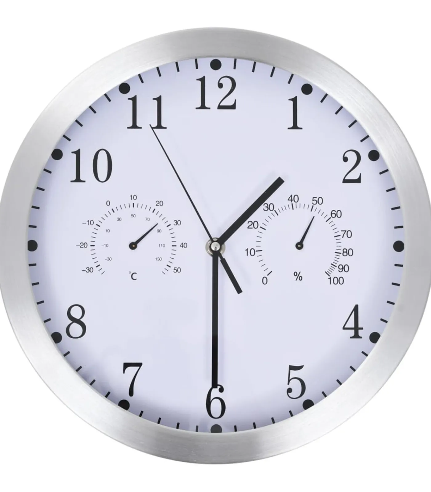 De klok heeft een hoogwaardig quartz uurwerk, waardoor de klok zeer nauwkeurig is in het bijhouden van de tijd. De klok heeft een hygrometer en een thermometer die de luchtvochtigheid en kamertemperatuur weergeven. Dankzij de grote wijzerplaat en de duidelijke cijfers is de klok zelfs van ver weg goed te lezen. Hij kan gemakkelijk aan de muur worden gehangen. De klok is ideaal voor thuis, op kantoor, in de wachtkamer of bij de receptie.
