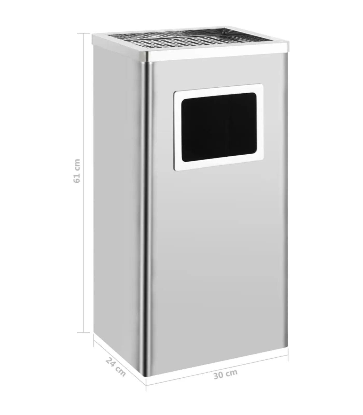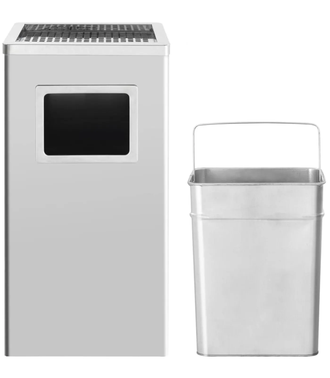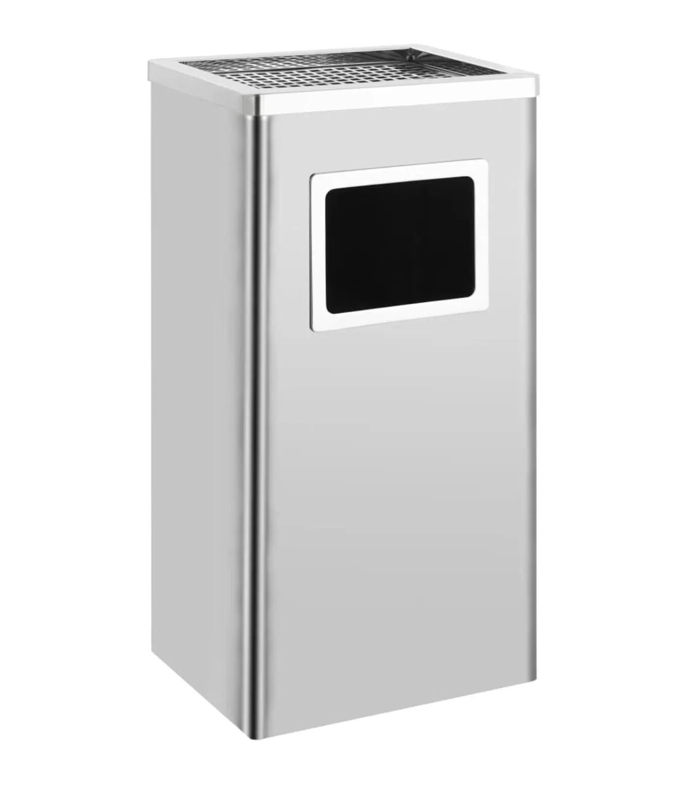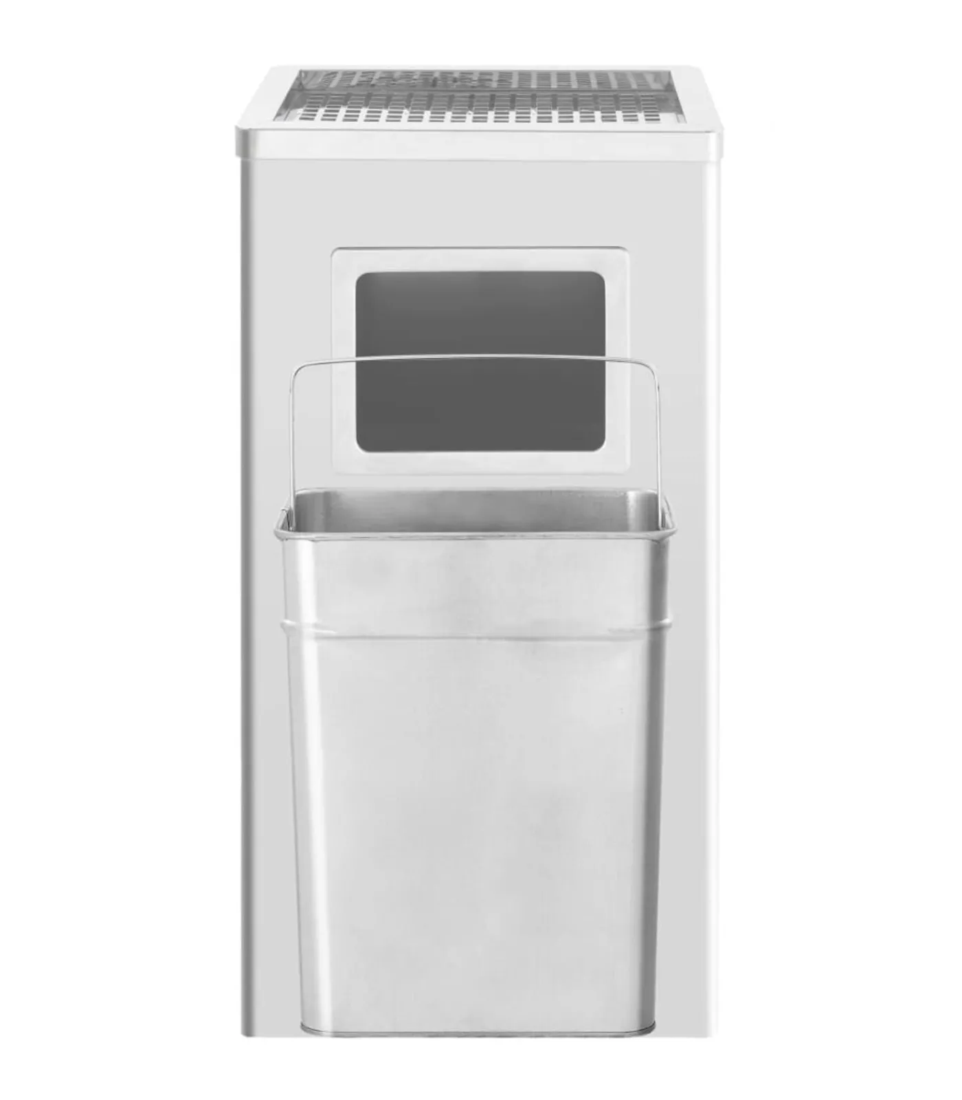 Onze hoogwaardige asbak/prullenbak wordt gekenmerkt door de elegantie van roestvrij staal en een asbakontwerp. Hij heeft niet alleen een geavanceerd ontwerp, maar is ook zeer functioneel. Onze afvalcontainer heeft een grote afvalbak met daarboven een asbak. Hij kan zowel binnen als buiten worden gebruikt en is dus ideaal voor hotels, restaurants, kantoren, enz.