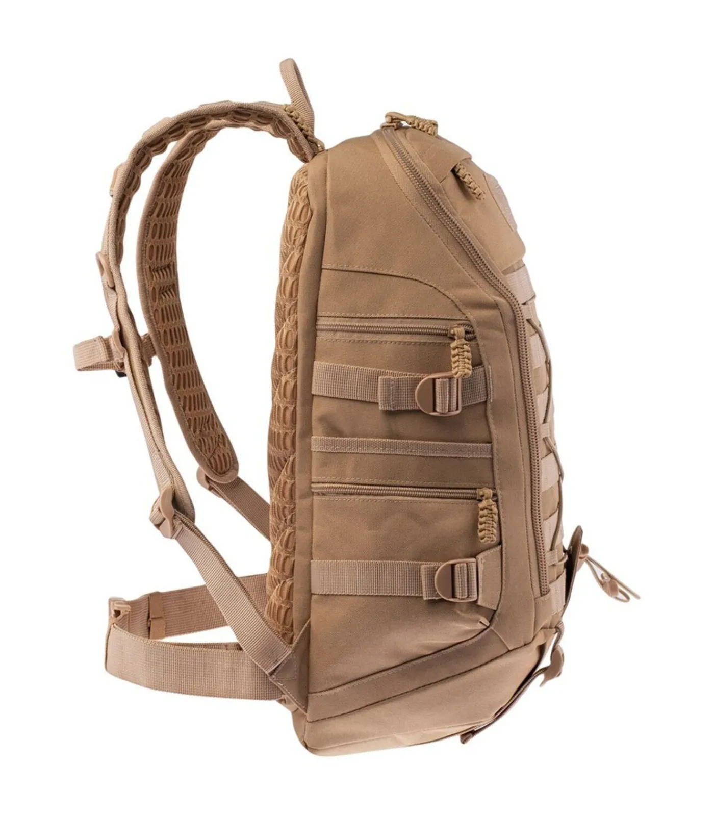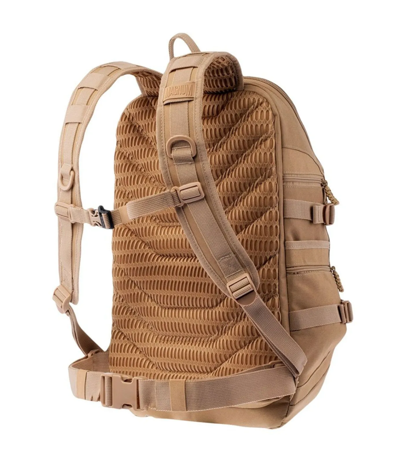 Productspecificaties: Magnum Cityox 28L Rugzak De Magnum Cityox 28L Rugzak is volledig gemaakt van polyester materialen. De rugzak is ongeveer 50 cm lang, 31 cm hoog en 18 cm breed. Opvallende ontwerpaspecten zijn onder andere het merklogo dat prominent wordt weergegeven. De rugzak sluit met SBS ritsen. Extra functies bestaan uit een verstelbare tailleband, verstelbare schouderbanden, bungee koorden, handvat, draagsysteem, laptopvak, organisatiegedeelte en PALS (Pouch Attachment Ladder System) webbing. De interne organisatie is verdeeld over één hoofdvak. Extra opbergruimte bestaat uit twee binnenvakken en vier zijvakken aan de buitenkant die veilig kunnen worden afgesloten met ritsen. De totale opslagcapaciteit is 28 liter.