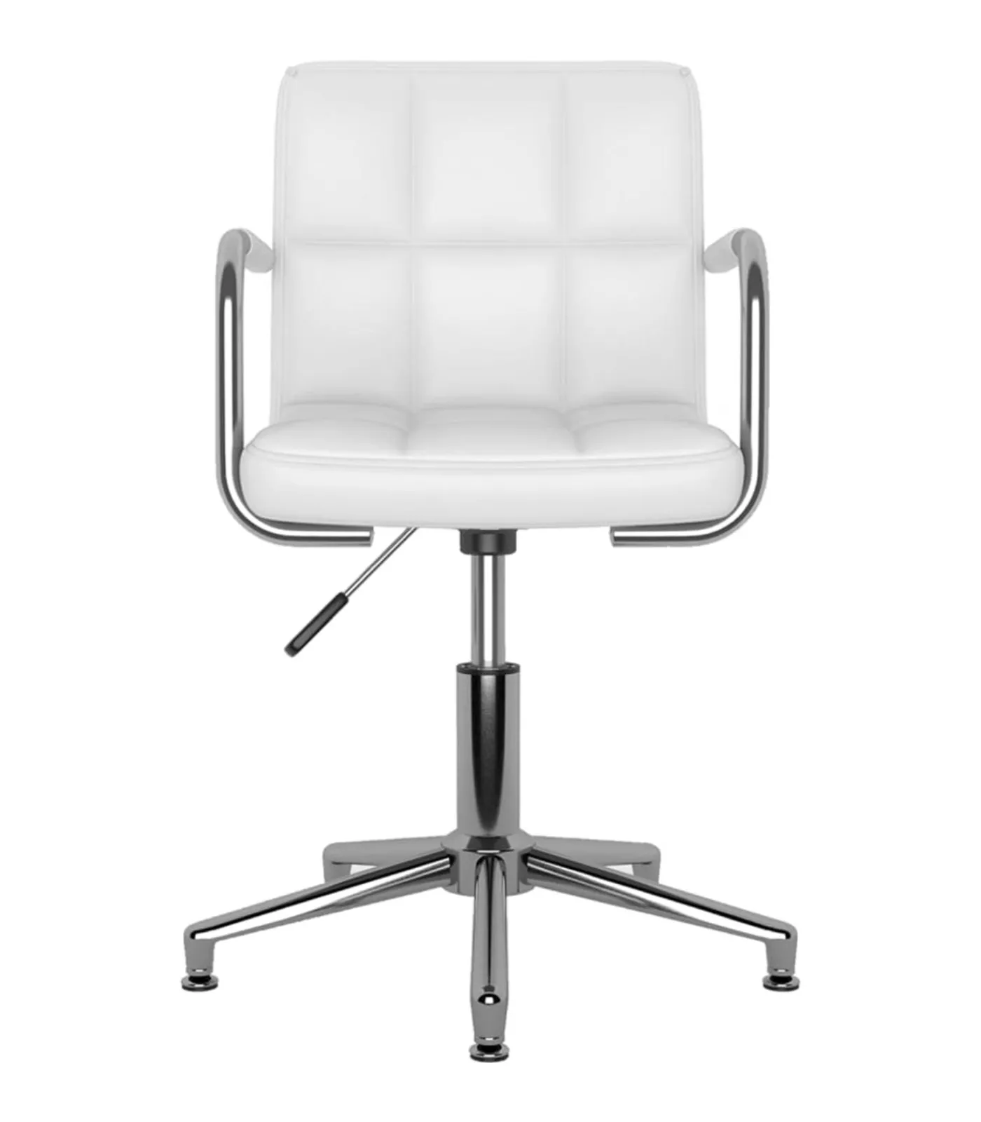 Deze draaistoelen zijn bekleed met eenvoudig te reinigen kunstleer en bieden optimaal zitcomfort. Het verchroomd stalen frame biedt veel stevigheid. Dankzij het gasveermechanisme is de zitting in hoogte verstelbaar. De stoel kan 360 graden draaien voor grote flexibiliteit.