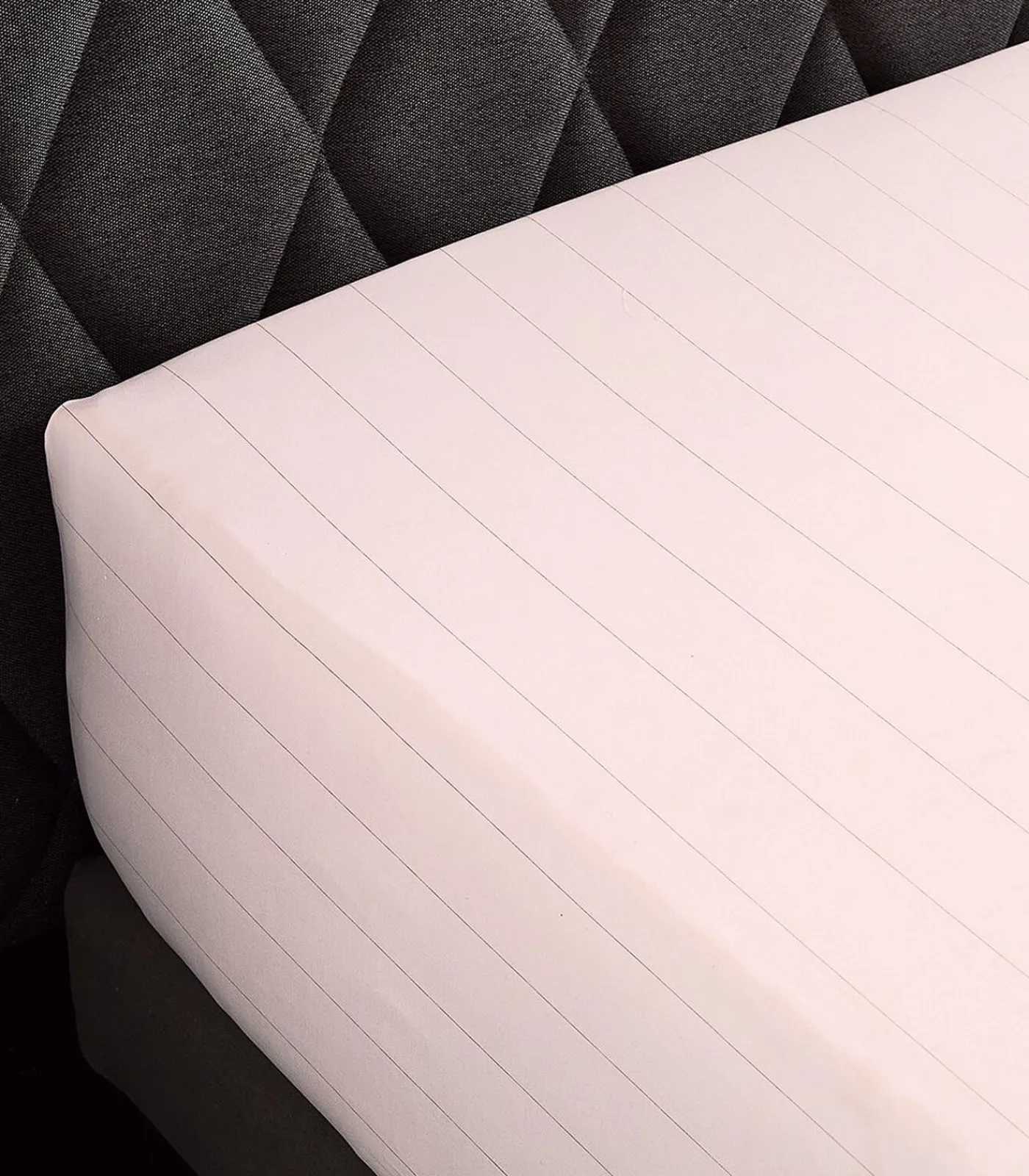 Print van fijne verticale strepen op poederroze achtergrond