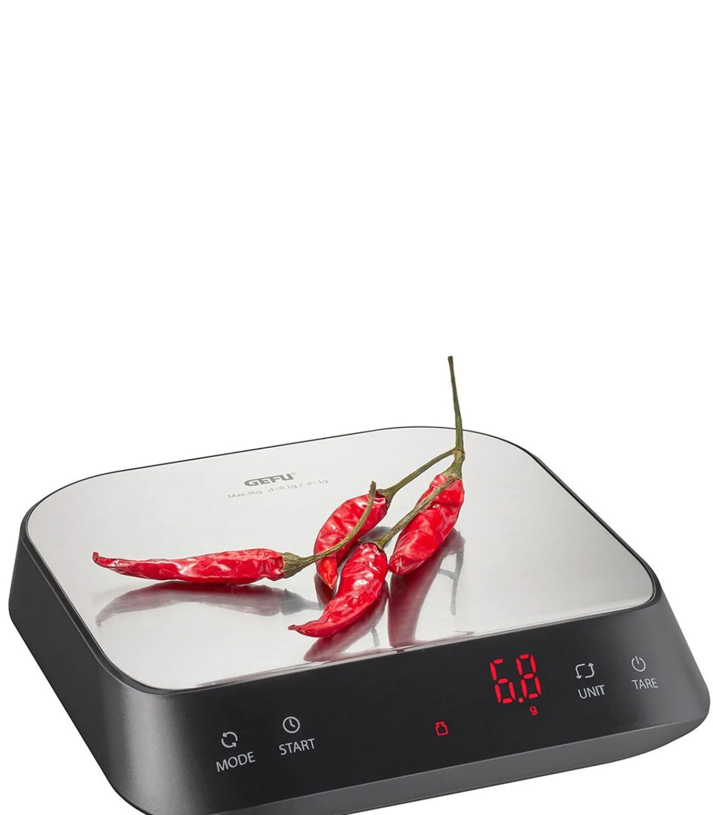 Deze Gefu keukenweegschaal Preziso is onmisbaar in jouw keuken! Gemaakt van kunststof en zilver en zwart van kleur, heeft deze weegschaal een meetbereik van 0,01 gram tot 3 kg. Het grote LED display maakt deze precisieweegschaal gemakkelijk af te lezen. De Gefu Keukenweegschaal Preziso heeft een handmatige weeg en tarra–funtie en een timer tot 19:59. De weegschaal wordt geleverd met AAA baterijen, zodat jij hem meteen kan gebruiken na ontvangst!