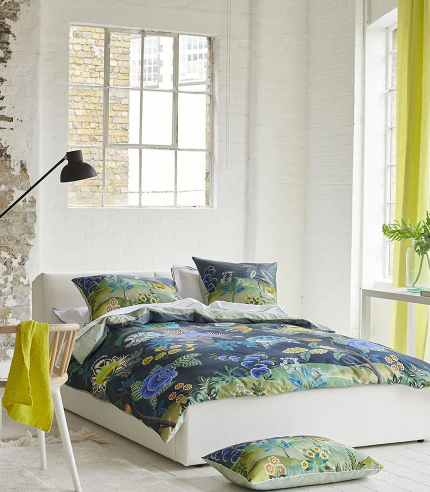 Dit ontwerp heeft een prachtige bloemenprint, met grafische bloemen en gebladerte in levendige kleuren. Het verfijnde motief is geïnspireerd op de brokaatstijl, een zijde versierd met goud– en zilverdraden, wat een luxueus, geraffineerd effect creëert. De subtiele tinten en elegante biezen voegen contrast en diepte toe aan het ontwerp. De meer sobere achterkant brengt het geheel in balans en creëert een warme, rustgevende sfeer in uw slaapkamer. Dankzij de fijne, strakke katoen perkal weving heeft de stof een uitzonderlijke zachtheid en voelt koel aan. Verwen uzelf met gebloemd beddengoed, waarbij elk detail is ontworpen om te zorgen voor elegantie en comfort in uw slaapvertrek.