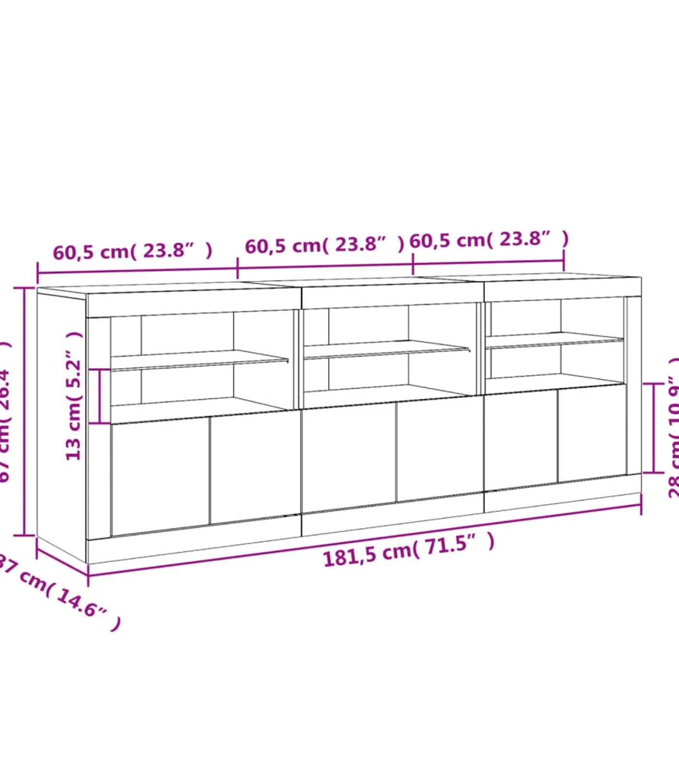 3 x dressoir: 60,5 x 37 x 67 cm (B x D x H)Legal Documents: