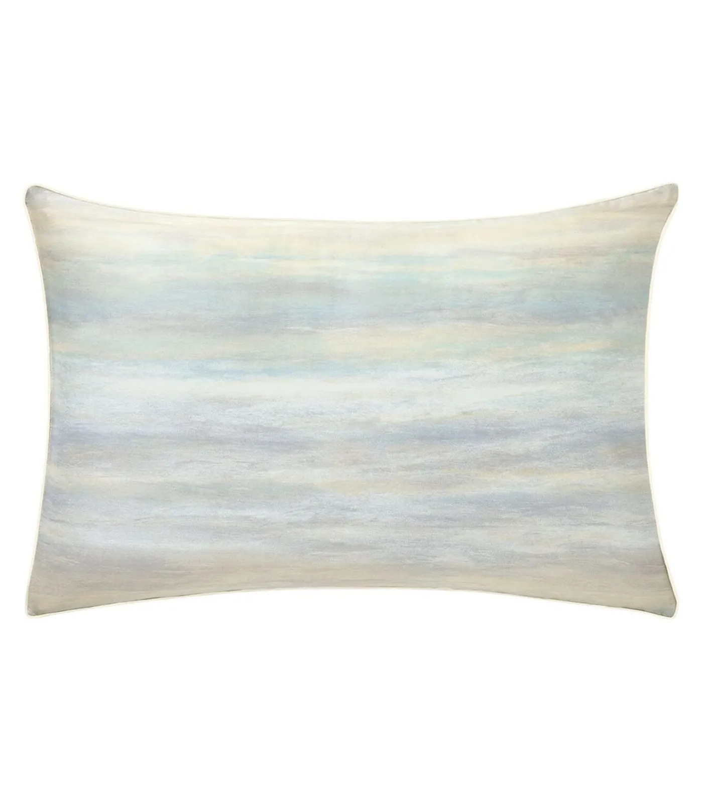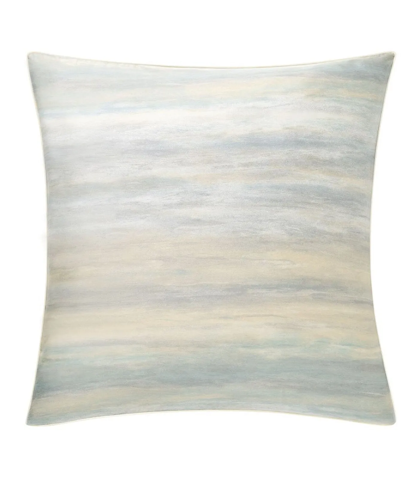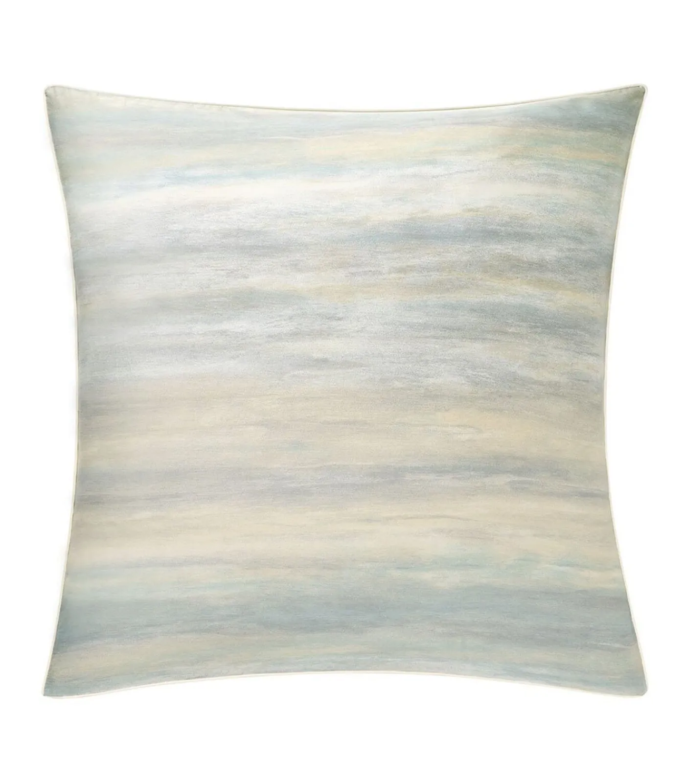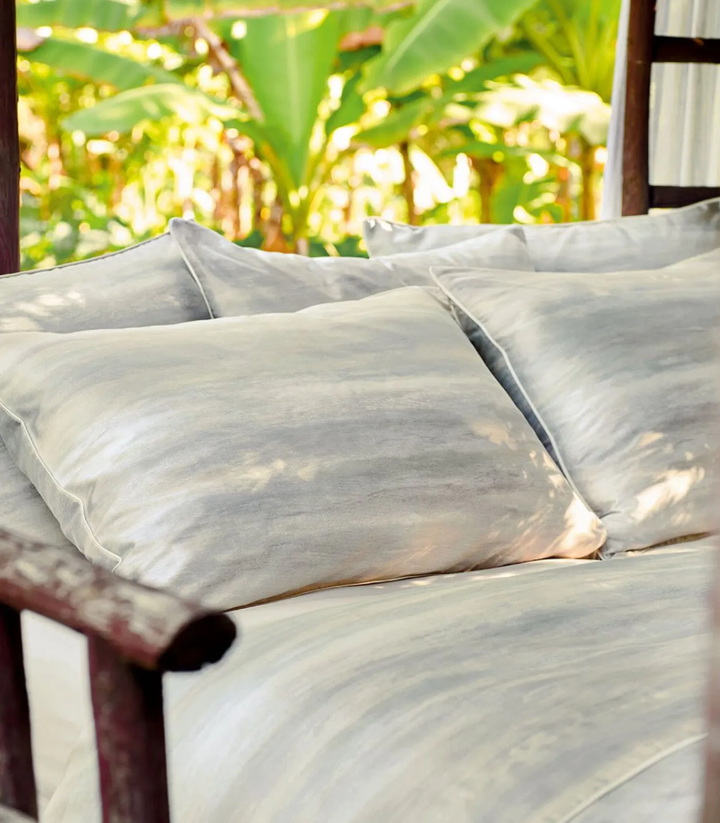 Voorkant en achterkant met aquarel vervaagde print in zand– en groentintenReversibele kussenhoes met dubbele flapAfwerking met ivoorkleurige bies