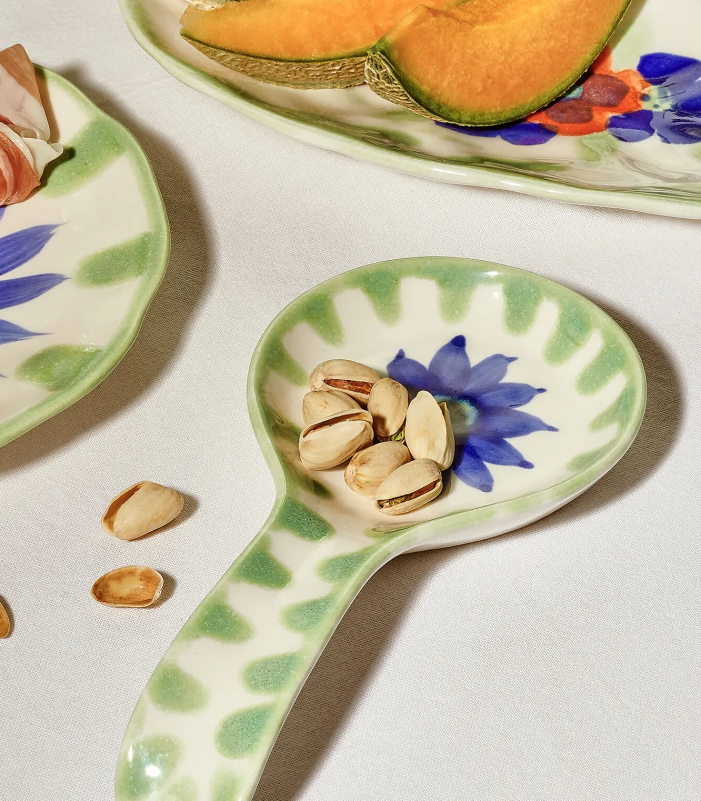 “La vie en fleurs!” Met de gewaagde Fleur collectie haal je het zuiden naar je tafel! Dit uitgebreide en kleurrijke servies met handgeschilderde bloementekeningen, bestaande uit borden, kommen, tapasschaaltjes, een lepelhouder, serveerschalen en kannen, doet het buitenleven lonken. Perfect om buiten te dineren of om wat vintage flair toe te voegen aan je interieur. Ideaal voor wie durft te spelen met kleur en vorm, en houdt van een tikkeltje retro en daarmee ongelooflijk on–trend is.