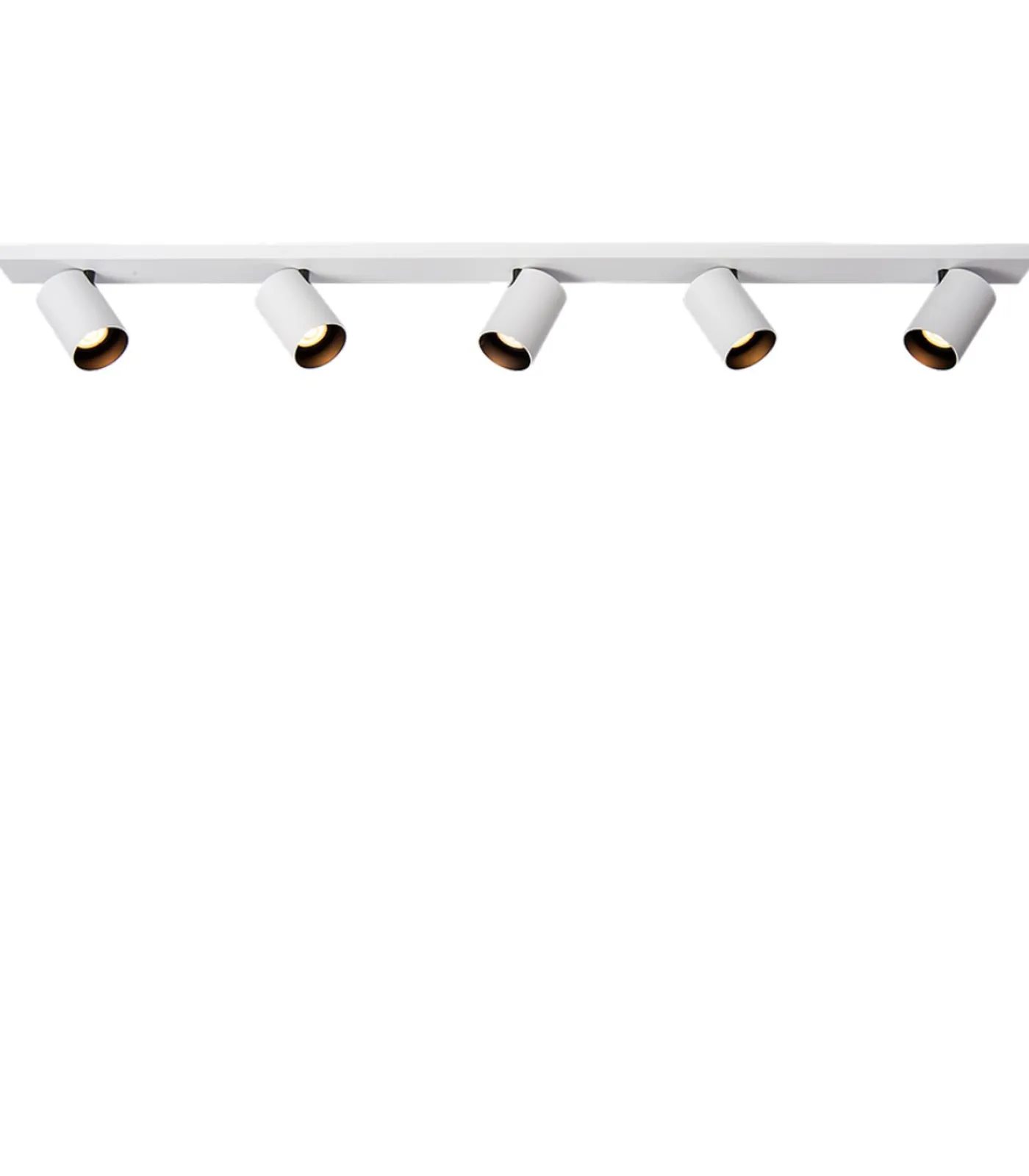 De plafondlamp Nuo 5 is een moderne en veelzijdige lamp met vijf spots. De spots hebben een diameter van 6,85 cm en zijn kantelbaar, zodat je de lichtbundel naar jouw wens kunt richten. De spots zijn wit aan de buitenkant en zwart vanbinnen, wat zorgt voor een mooi contrast. De metalen lamp heeft een lengte van 120 cm en past goed in een hedendaags interieur. Zoekwoorden : Plafondlamp, Plafondspot, Zwart, Wit, Metaal, GU10, industrieel, landelijk