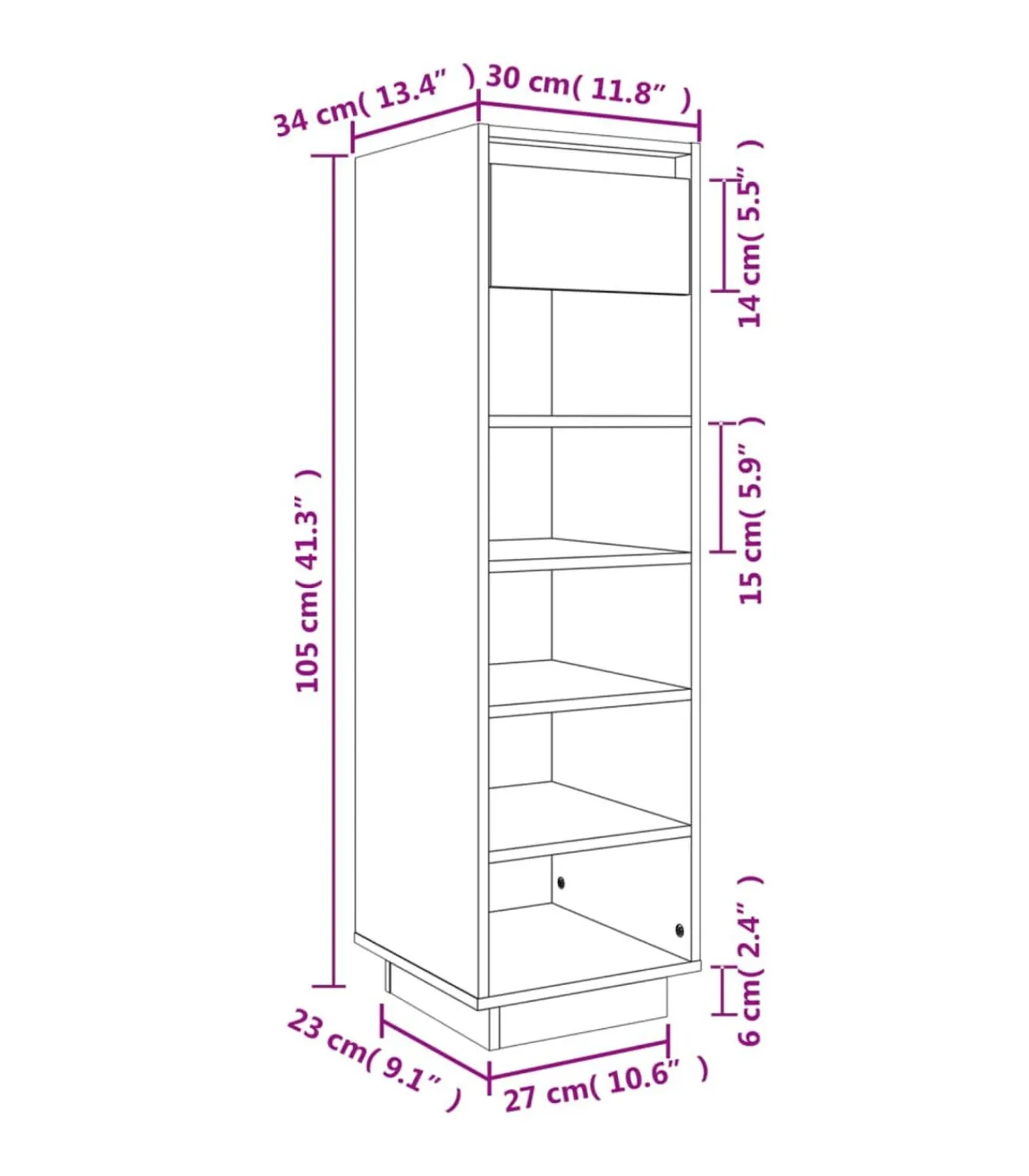 Afmetingen: 30 x 34 x 105 cm (B x D x H)
