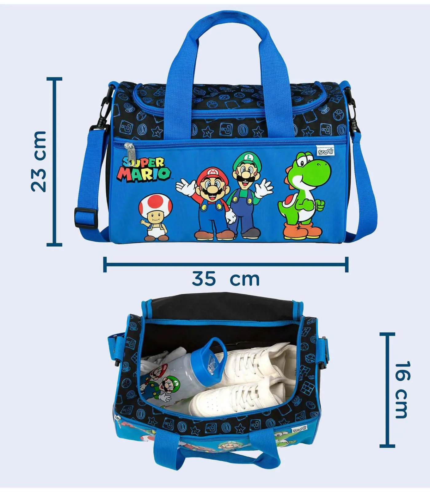Sale sporttas Super Mario blauw – kindertas met Nintendo design Reistassen