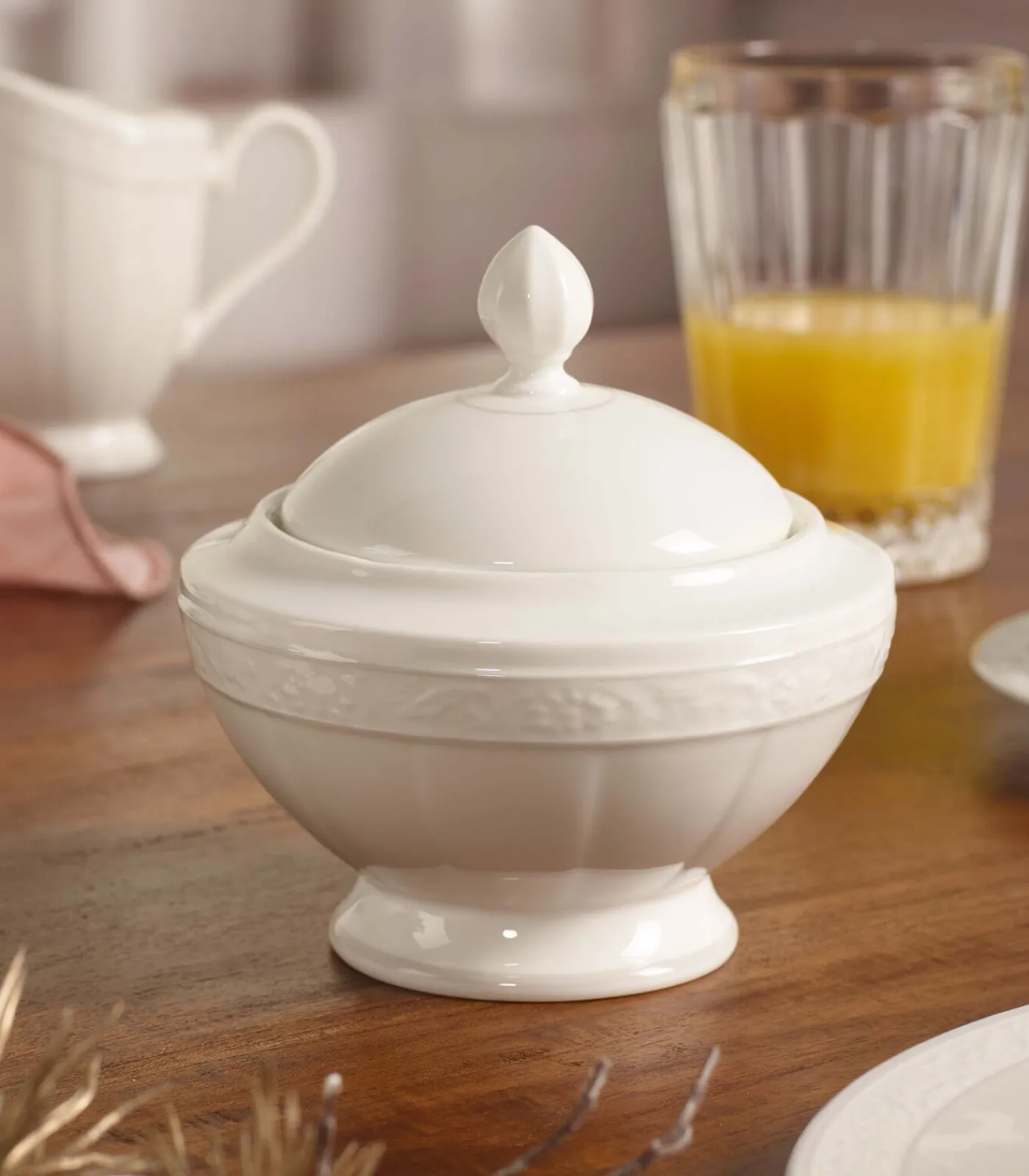 Met de collectie Gray Pearl brengt Villeroy & Boch elegantie op tafel: De klassieke vormen en subtiele decoraties in zacht zilvergrijs verlenen het decor een zweem van exclusiviteit. Villeroy & Boch staat sinds 1748 voor porselein van de allerbeste kwaliteit. De suikerpot Gray Pearl overtuigt door een fraai gevormd design met een charmant klassiek karakter. Presenteer de suiker voor in de koffie of thee altijd in uniek glinsterend porselein dat past bij het servies. Natuurlijk geschikt voor de vaatwasser.