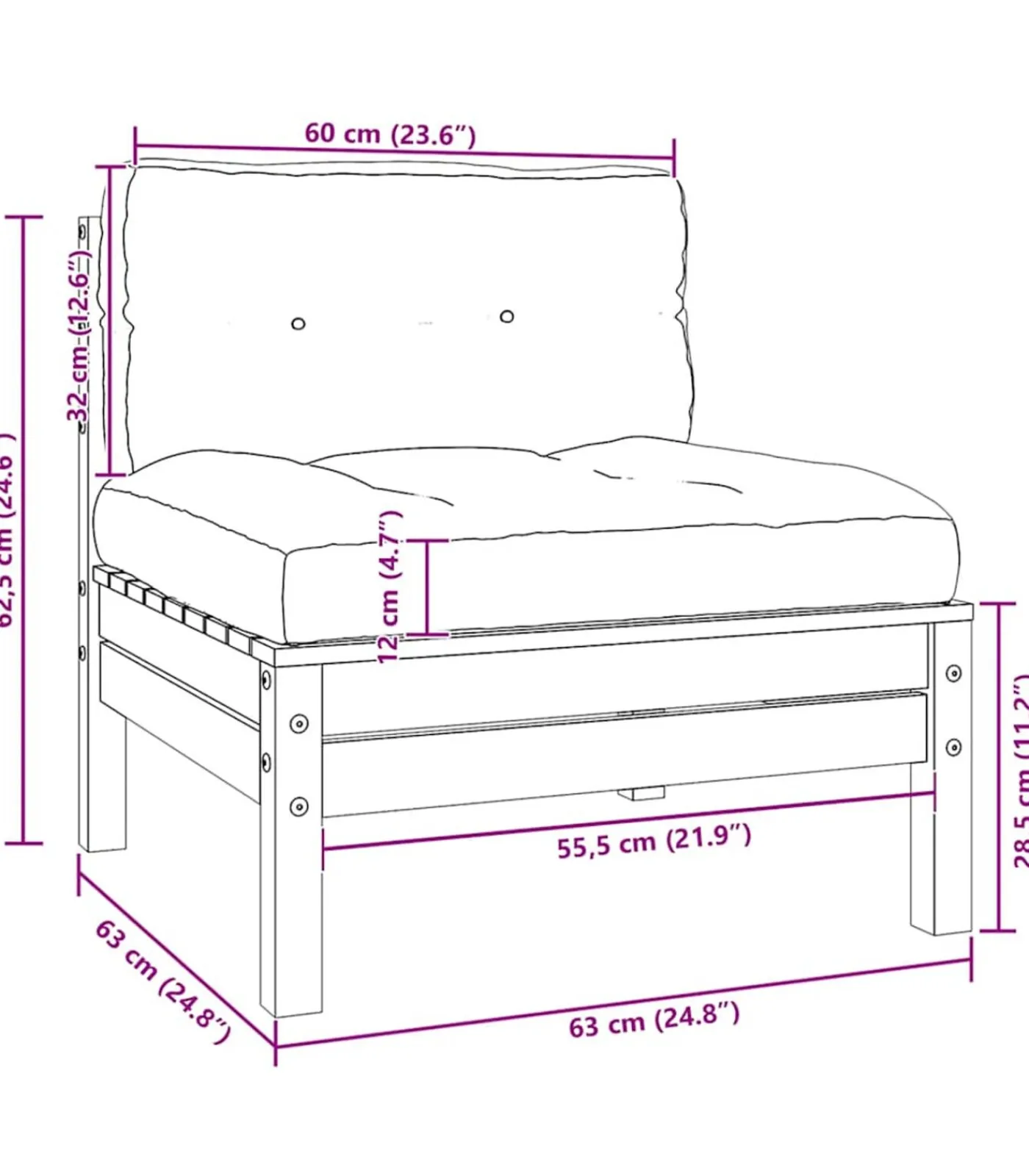 Afmetingen rugkussen: 60 x 32 x 5 cm (L x B x D)