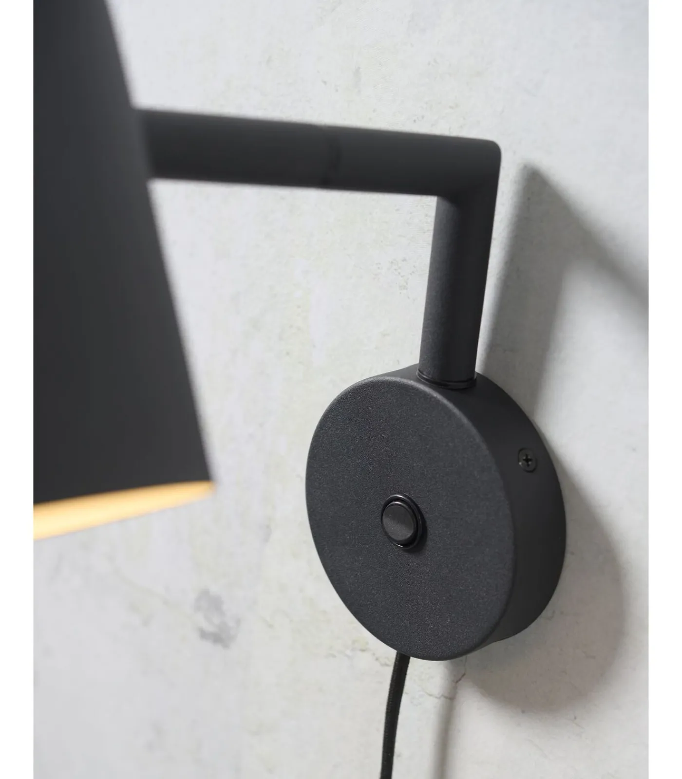 Geef uw ruimte een moderne touch met de Marseille wandlamp. Deze stevige lamp heeft een voet en kap gemaakt van ijzer, afgewerkt in het zwart voor een moderne touch. De verstelbare kap kan naar links en rechts bewegen, waardoor er gerichte verlichting mogelijk is, perfect om te lezen of een nachtkastje te verlichten. Deze lamp, met een afmeting van 29x12x27cm, combineert naadloos functionaliteit met stijl, en werpt een warme gloed en een vleugje industriële charme over uw ruimte.