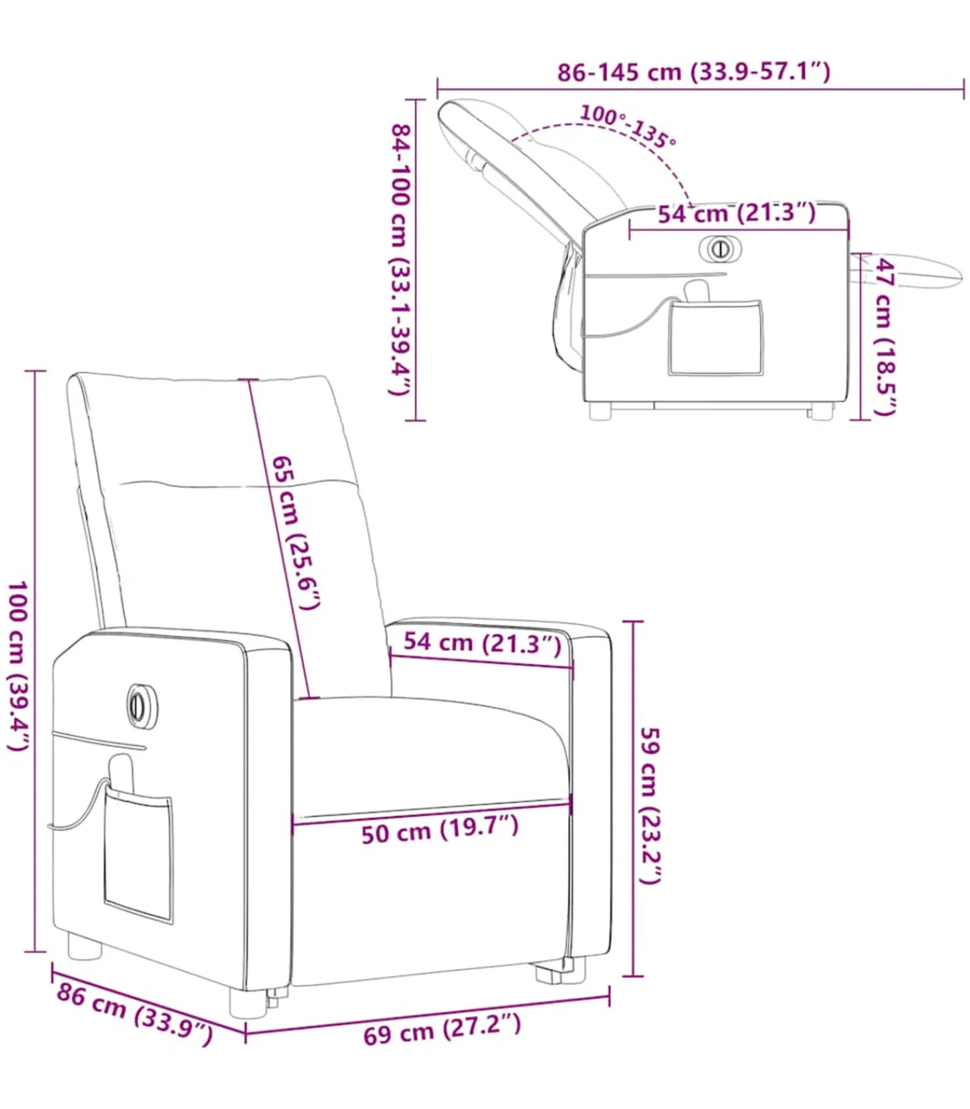 Elektrisch verstelbare functie: deze verstelbare fauteuil is uitgerust met een elektromotor die ervoor zorgt dat de voetensteun en rugleuning automatisch in elke positie worden aangepast naar eigen voorkeur, met een simpele druk op de knop aan de zijkant van de stoel. De stoel is maximaal 135 graden te kantelen. De rugleuning kan bovendien snel in zijn oorspronkelijke stand worden gezet met een druk op de knop.